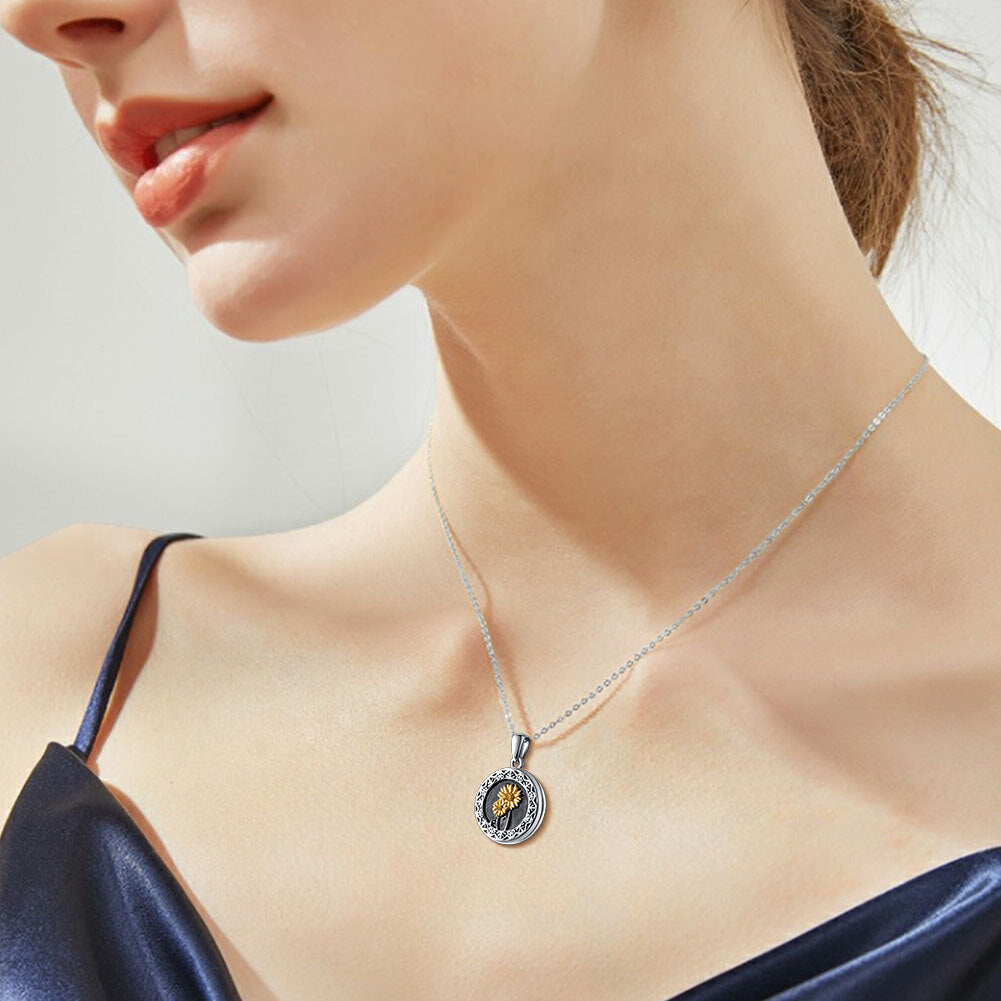 Sterling Silver Sunflower Personalized Photo Locket Necklace