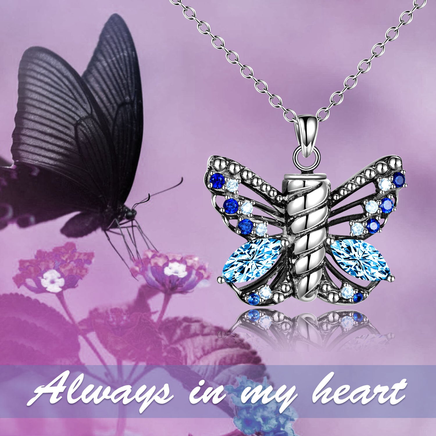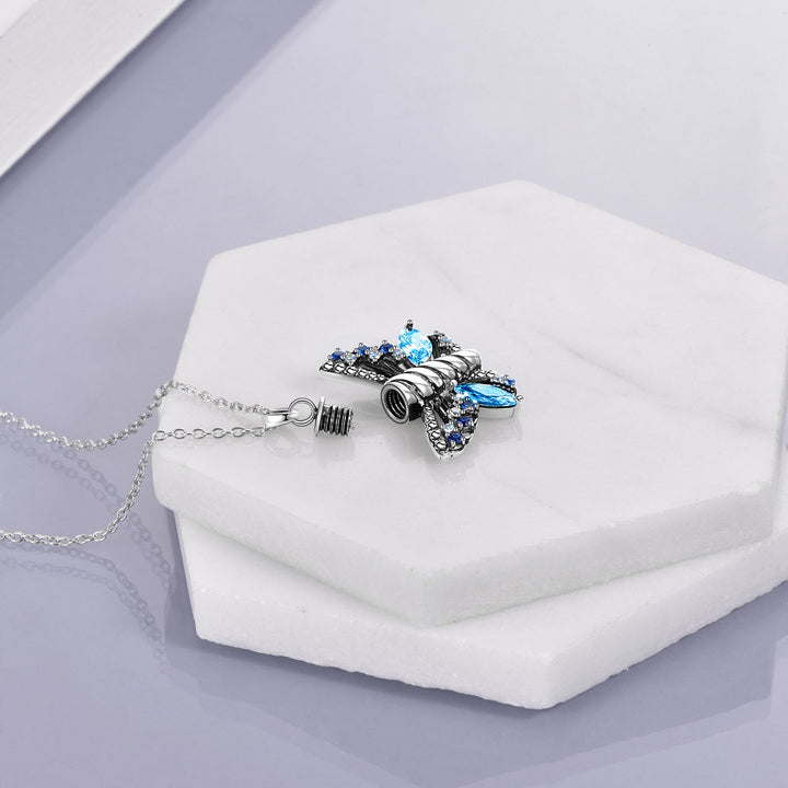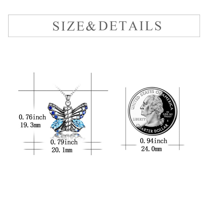 Sterling Silver Cubic Zirconia Butterfly Urn Necklace for Ashes