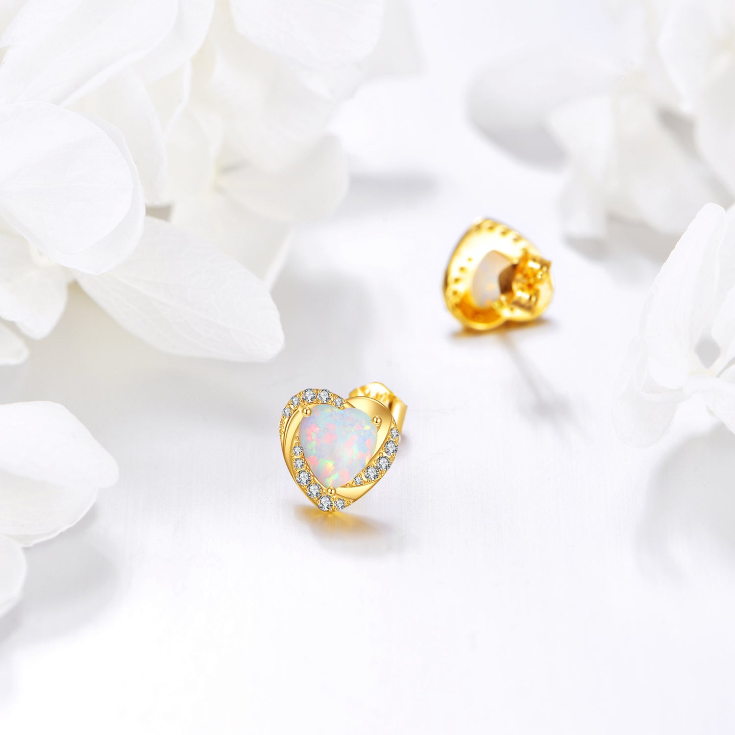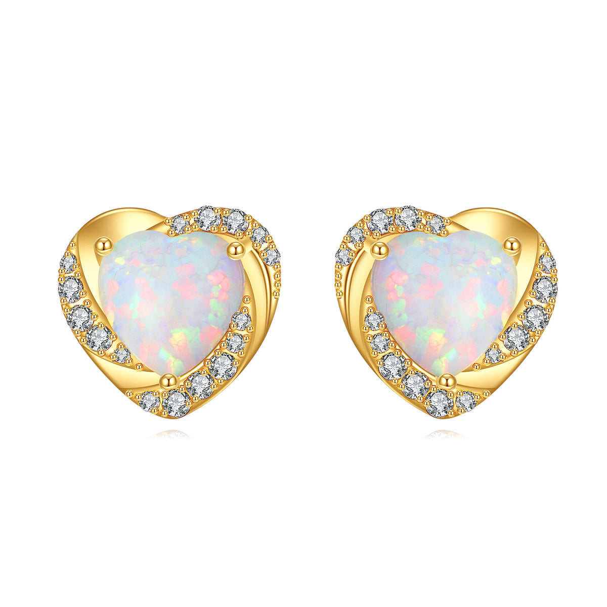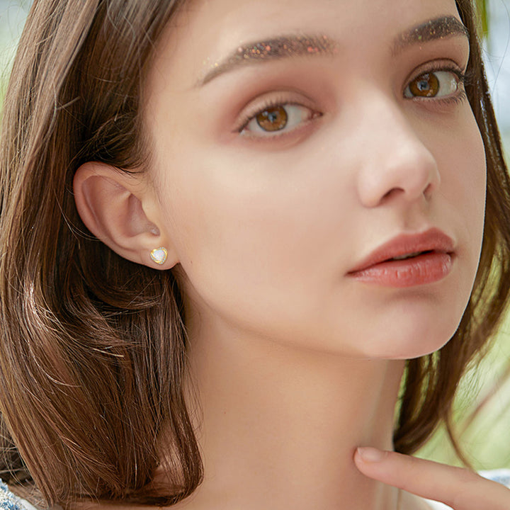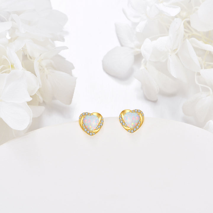 14K Gold Moissanite & Opal Heart Stud Earrings