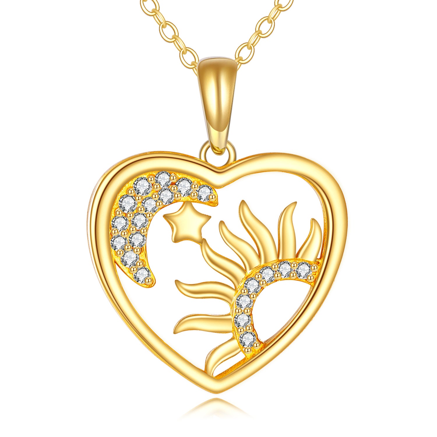 14K Gold Cubic Zirconia Sun Pendant Necklace