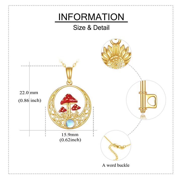 This 14K Gold Moonstone Mushroom & Celtic Knot Pendant Necklace by YFN is an enchanting and unique piece for women. This exquisite Pendant Necklace combines the timeless elegance of 14K Gold with the mystical charm of a Moonstone, perfectly set in a detailed Mushroom Celtic Knot Design. It is a perfect blend of classic and contemporary styles for expressing individuality.