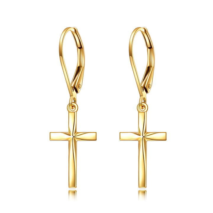These no-stone Women's Lever-back Earrings are crafted from Lustrous 14K Gold, Featuring a Classic Cross Design.