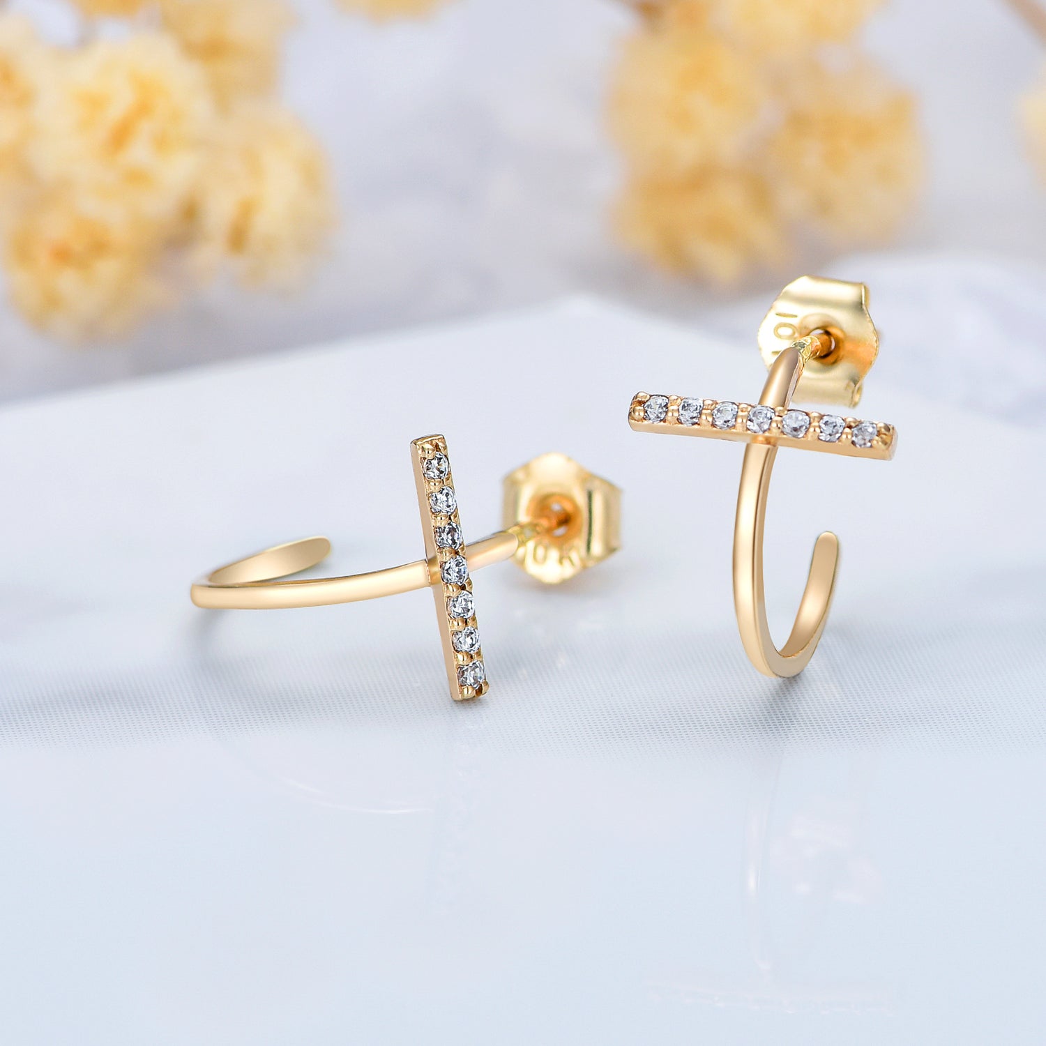 10K Gold Cubic Zirconia Cross Stud Earrings