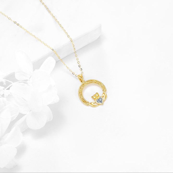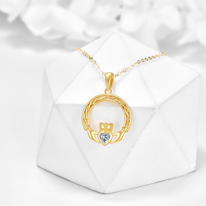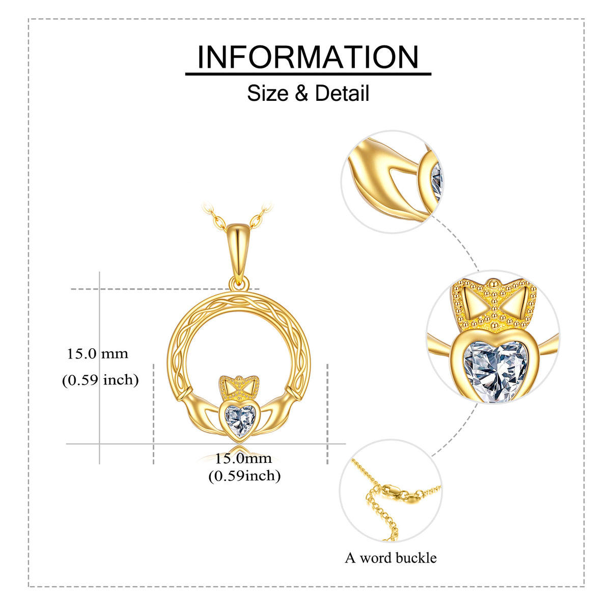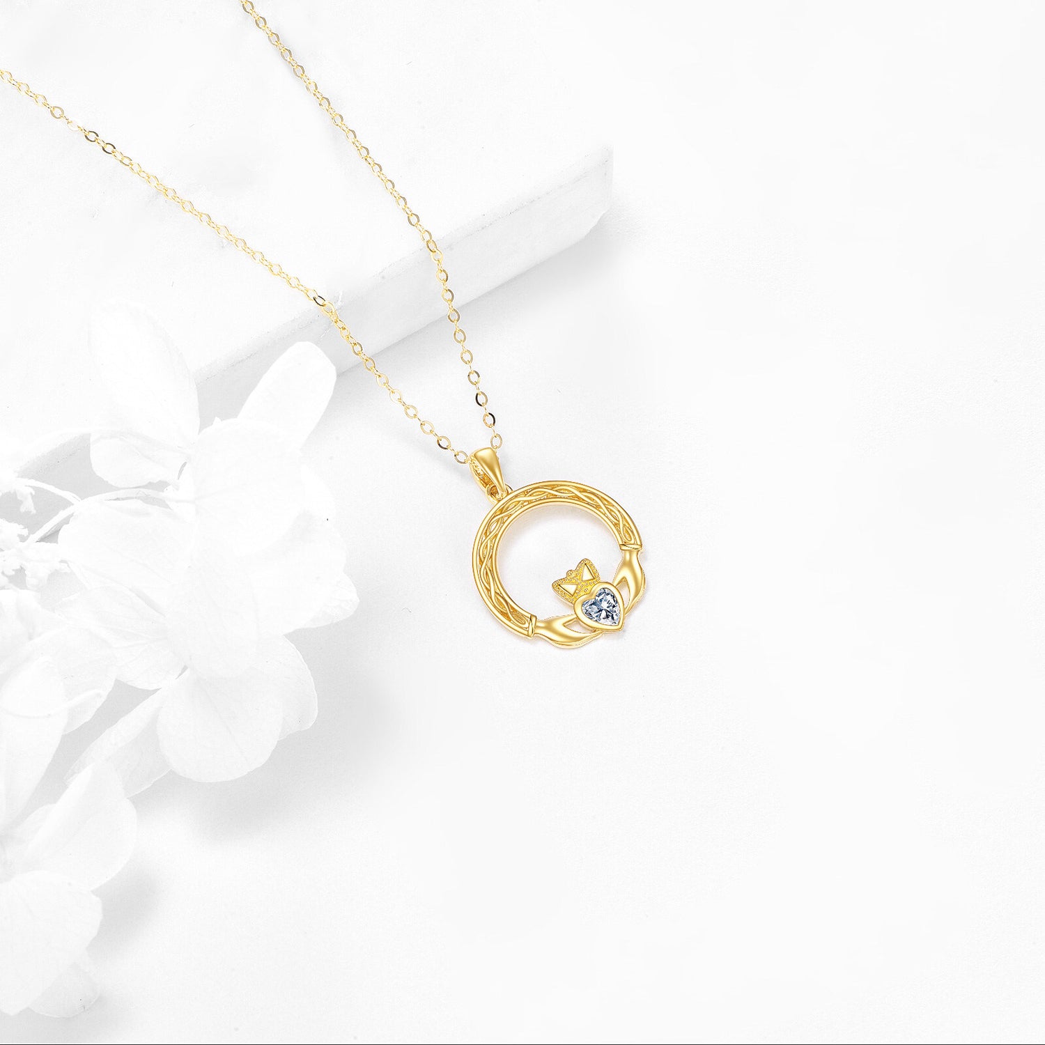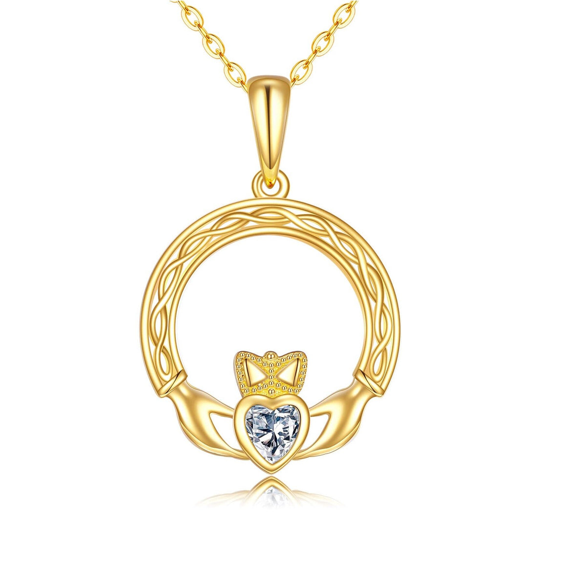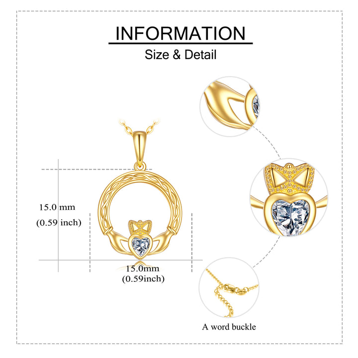 14K Gold Heart Cubic Zirconia Celtic Knot Pendant Necklace For Women