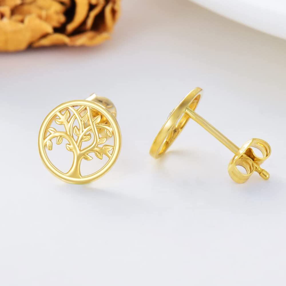These no-stone Women's Stud Earrings are crafted from Premium 14K Gold, Featuring the Iconic Tree of Life Design.