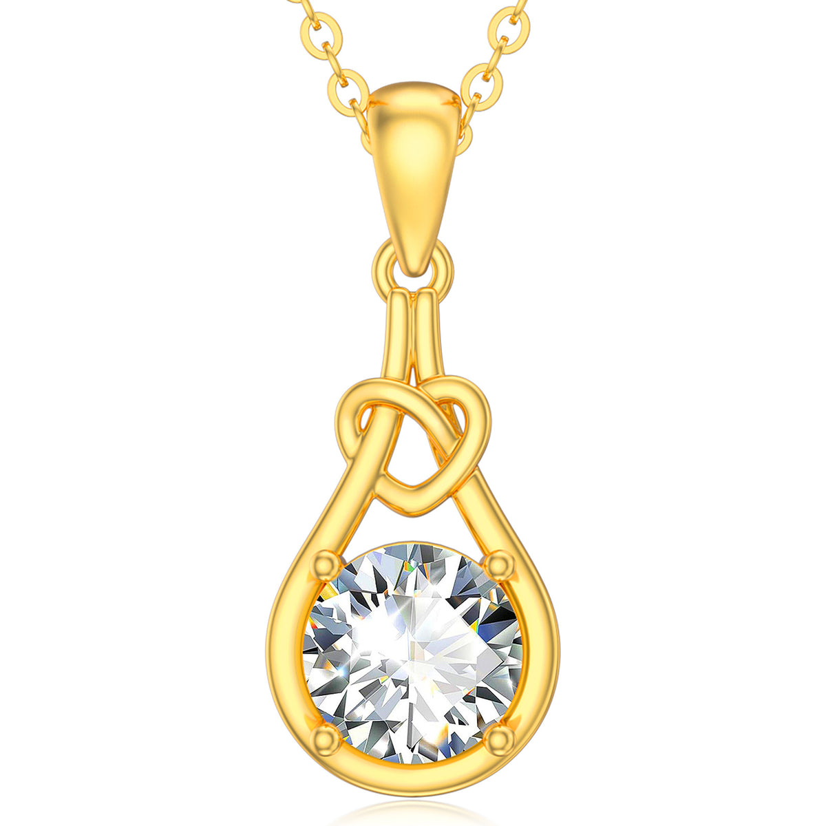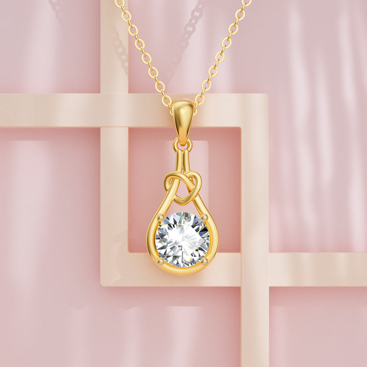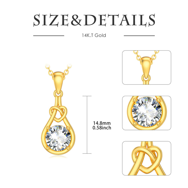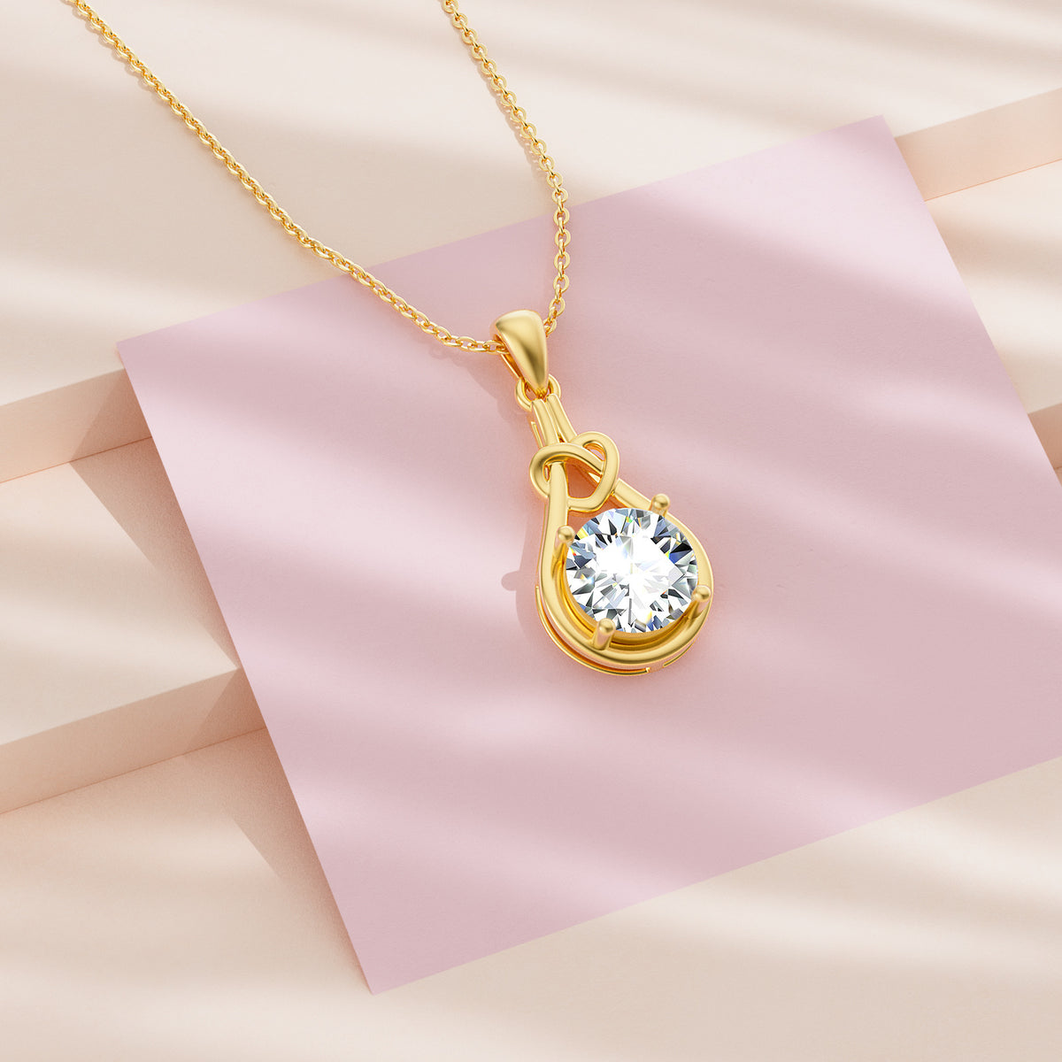 14K gold pendant and chain; moissanite gemstone; solitaire-style setting.