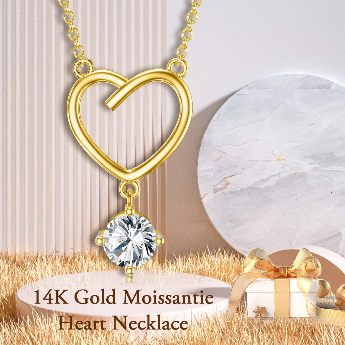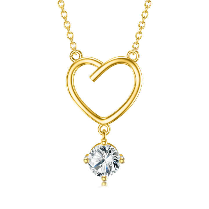 14K Gold Circular Shaped Moissanite Heart Pendant Necklace