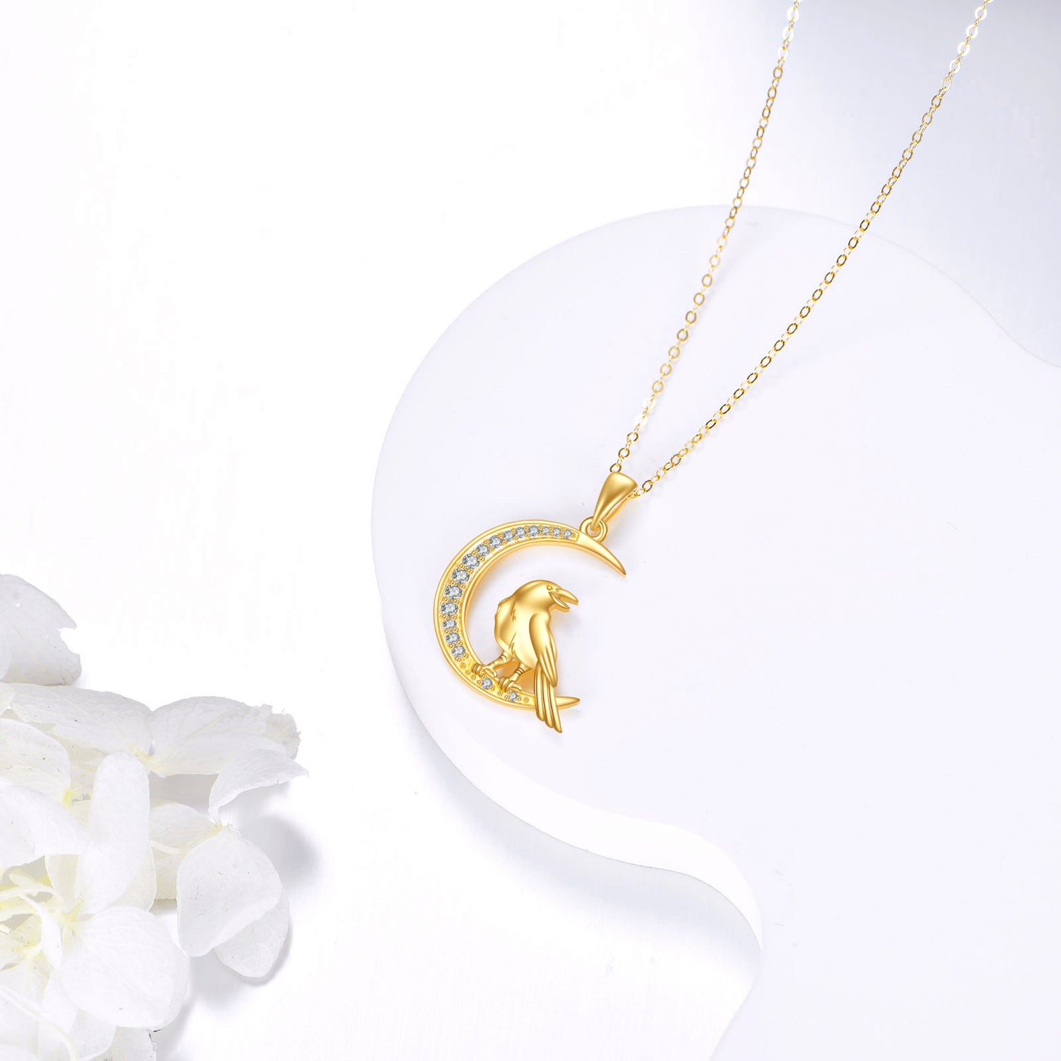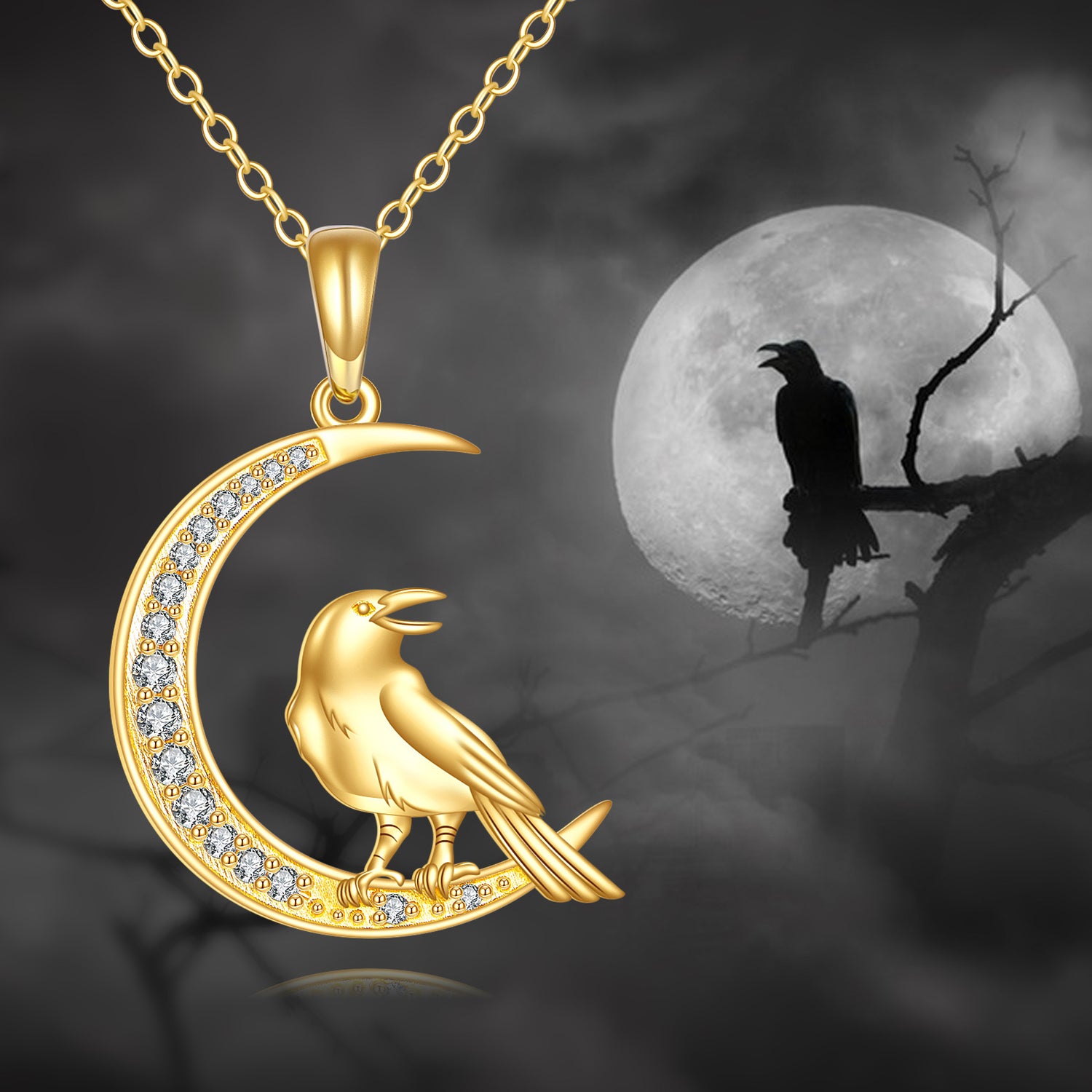 14K Gold Crow Cubic Zirconia Pendant Necklace