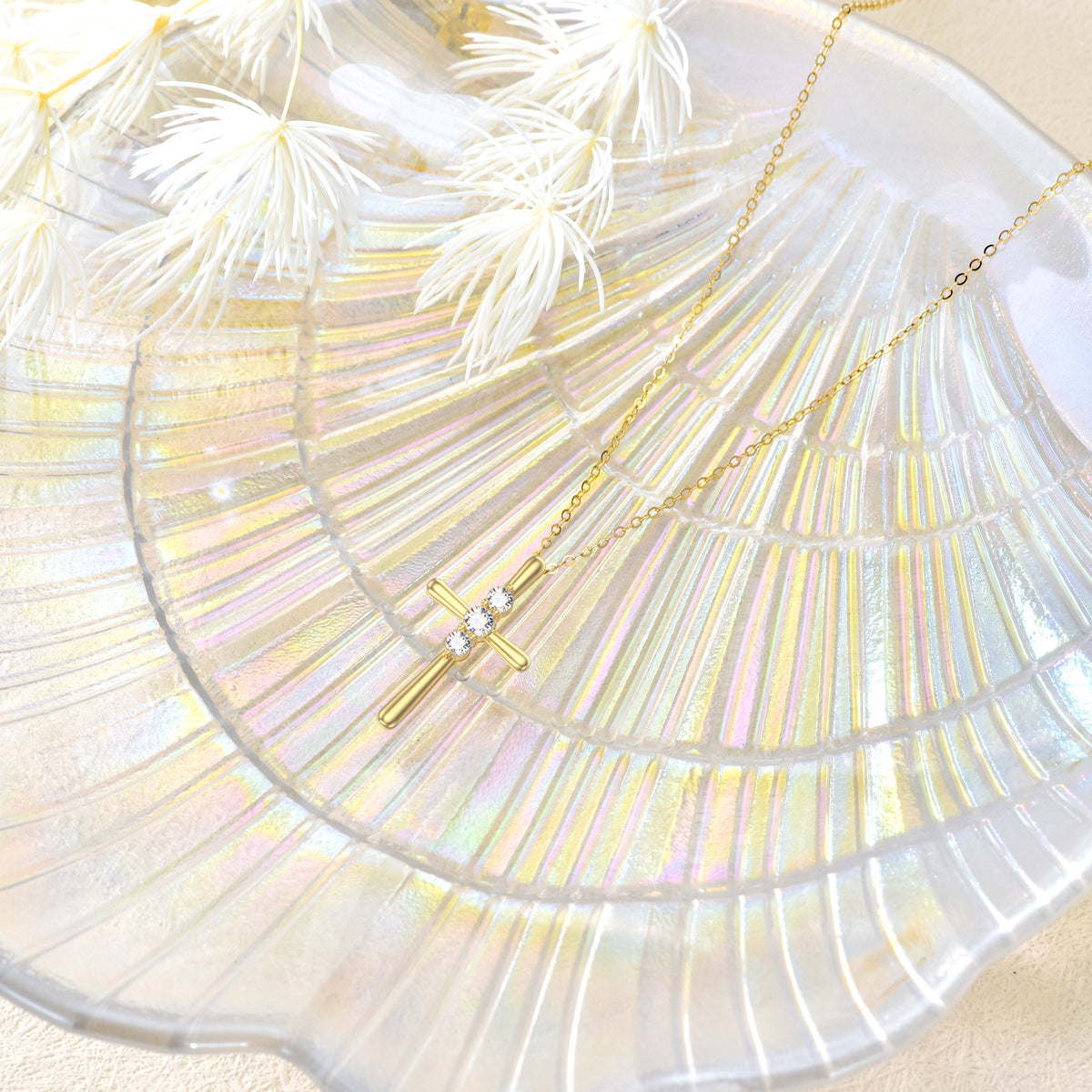 14K Gold Circular Shaped Cubic Zirconia Cross Pendant Necklace