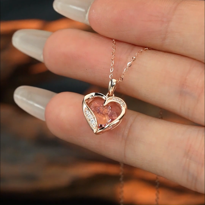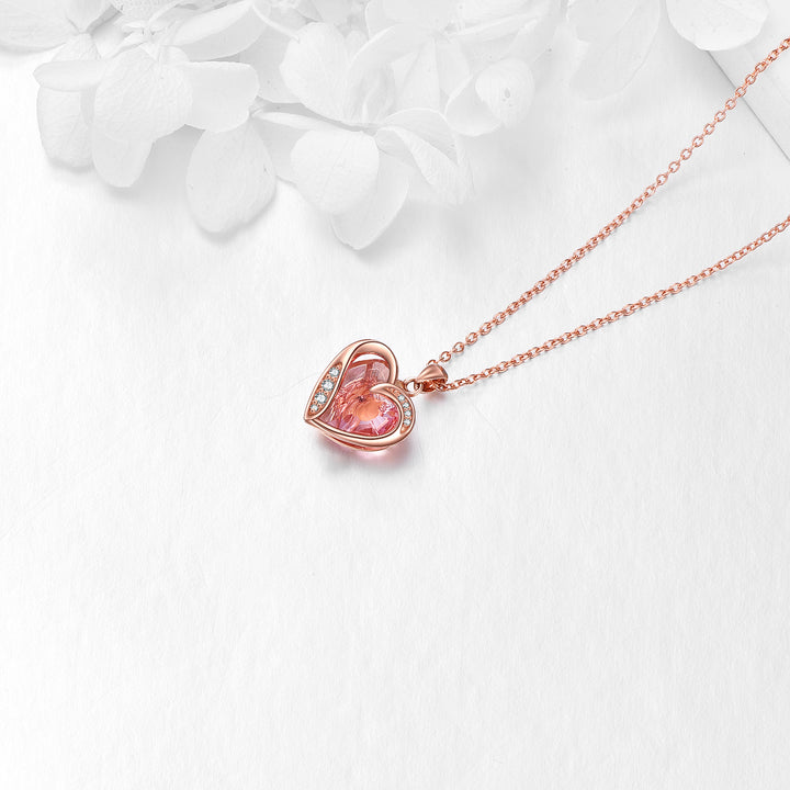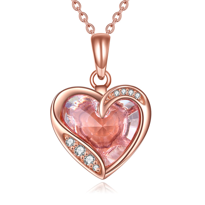 14K Rose Gold Crystal With Cubic Zirconia Heart Pendant Necklace