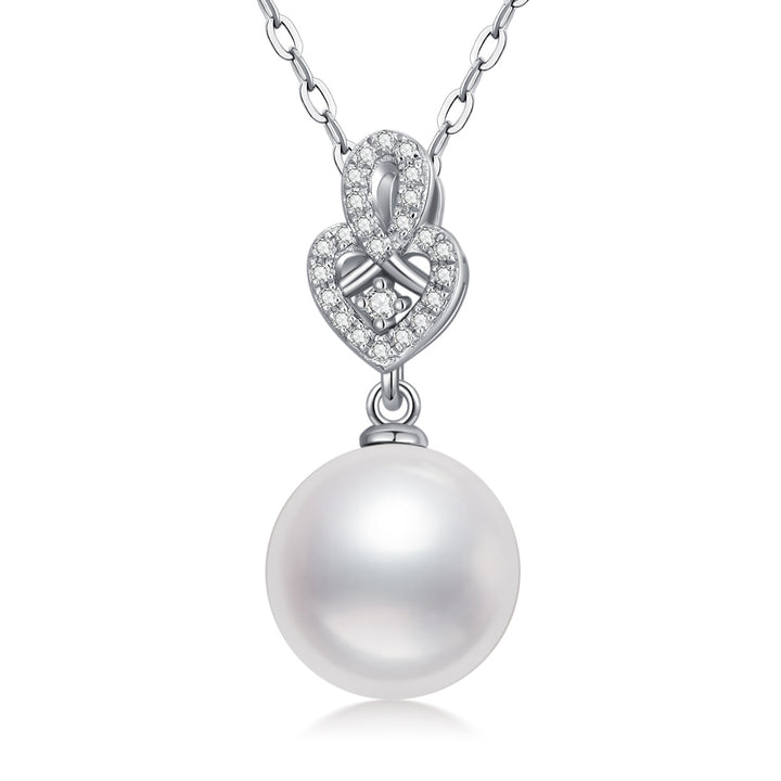 9K White Gold Pearl Round Pendant Necklace