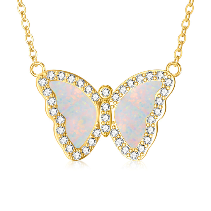 14K Gold Opal Butterfly Pendant Necklace