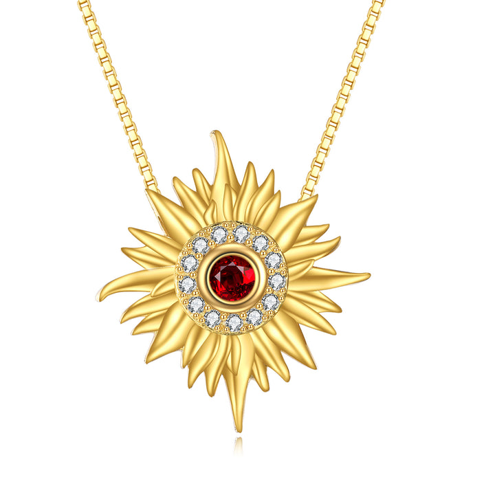 14K Gold Circular Shaped Cubic Zirconia Sun Pendant Necklace