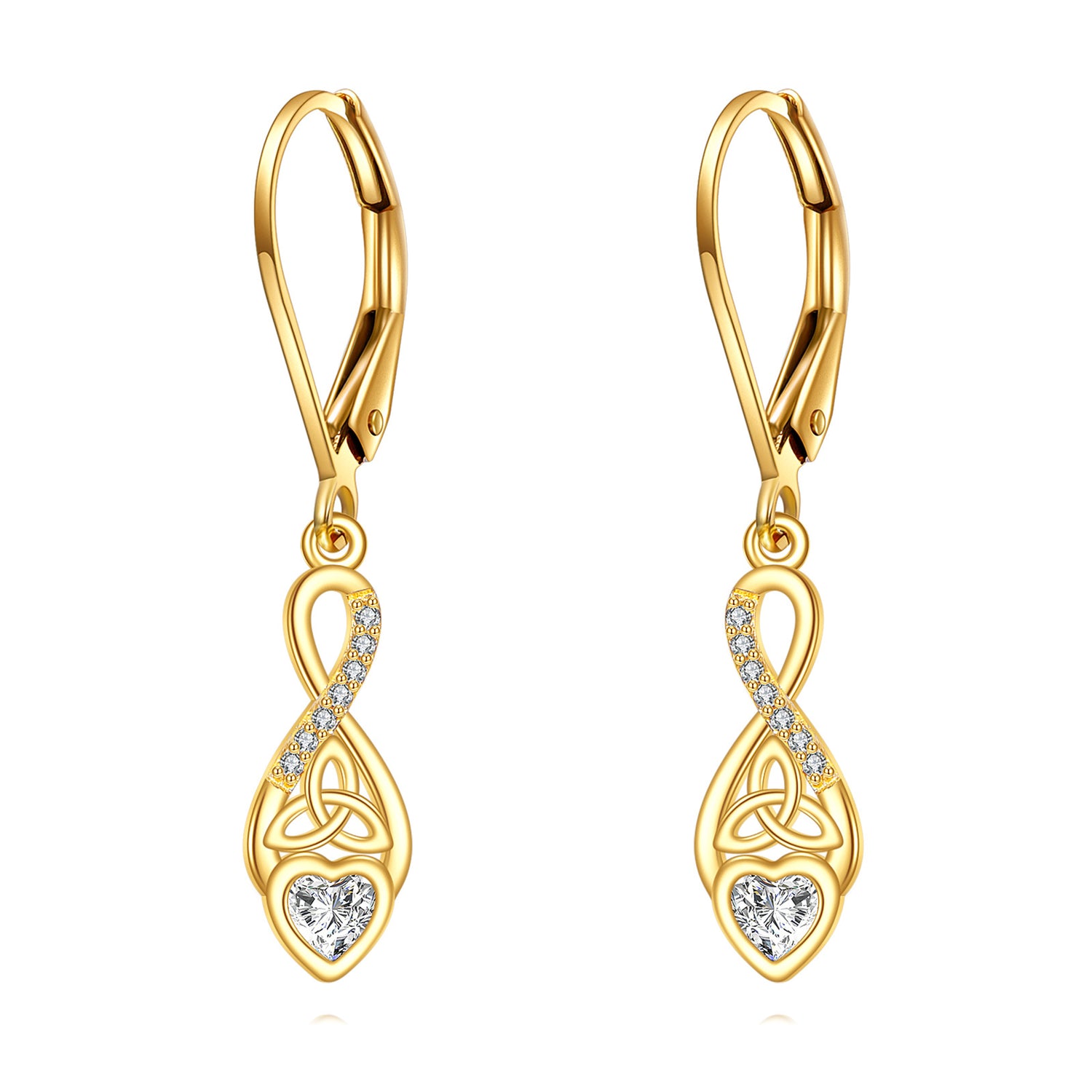 14K Gold Moissanite Celtic Knot Drop Earrings