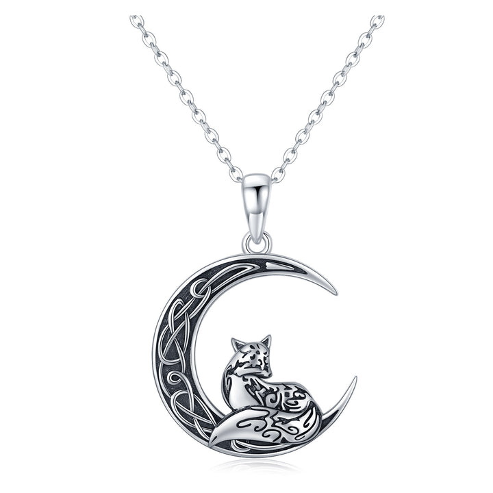 Sterling Silver Fox & Celtic Knot With Moon Pendant Necklace For Women