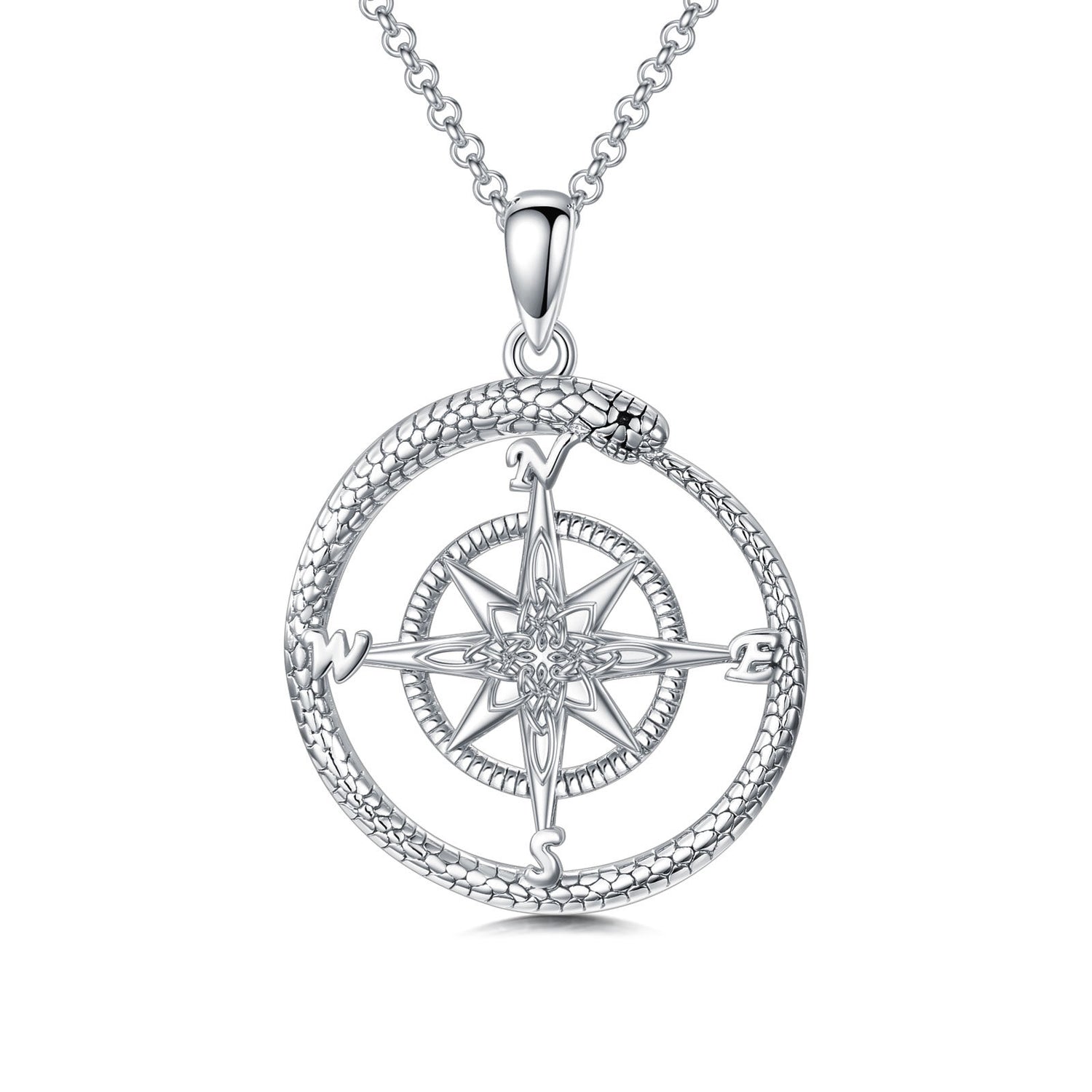 This Sterling Silver Snake Circle Pendant Necklace by YFN features a unisex circular design wrapped in a captivating snake motif. The white gold plating adds durability and shine, creating a versatile piece for any wardrobe.