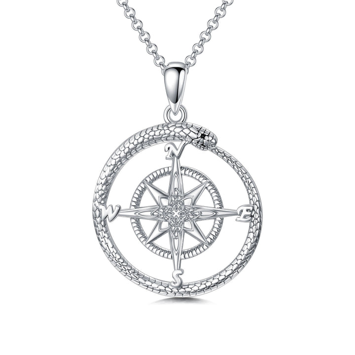 Sterling Silver Snake Circle Pendant Necklace