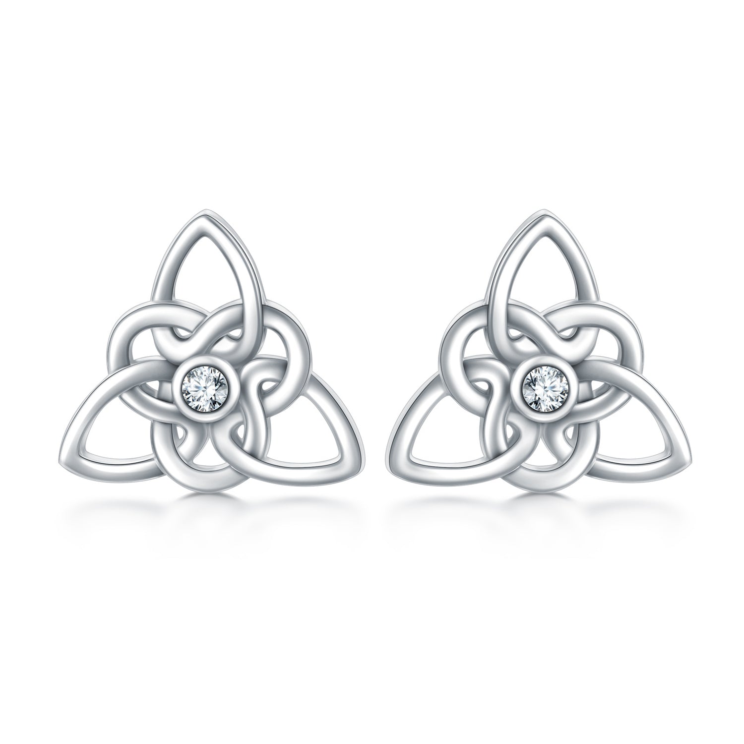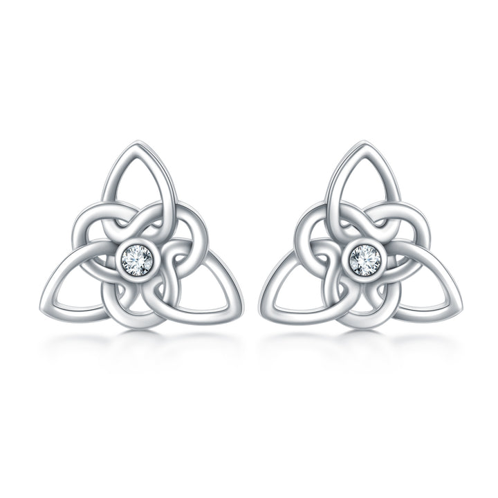 Sterling Silver Round Cubic Zirconia Celtic Knot Stud Earrings
