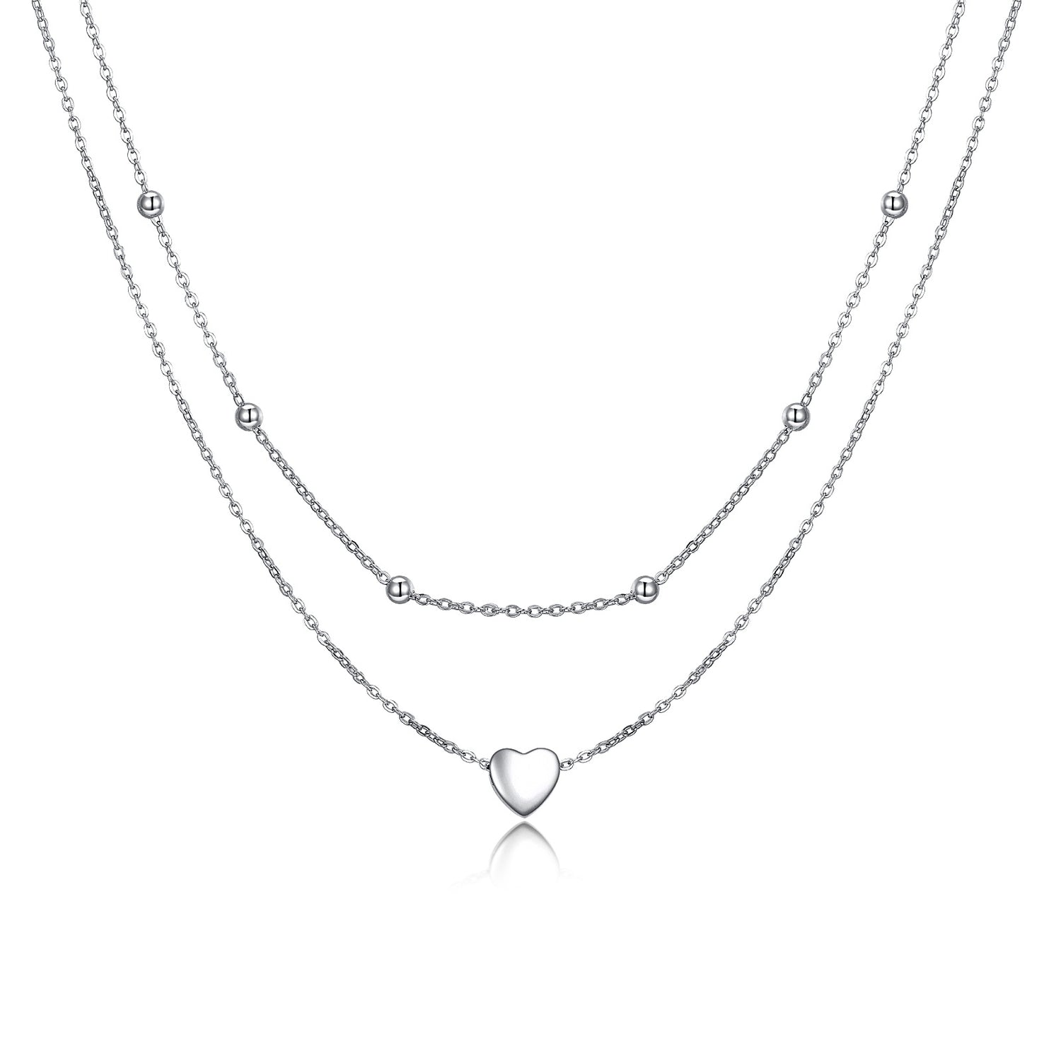 This Sterling Silver Heart Bead 2 Layered Necklace With Bead Station Chain For Women by YFN is a no-stone, elegant layered necklace for women who appreciate minimalist sophistication. Expertly White gold plated over premium sterling silver, the design features a timeless heart motif. The stone-free piece offers a chic and enduring look, providing a touch of refinement that is both easy to wear and maintain for every occasion.