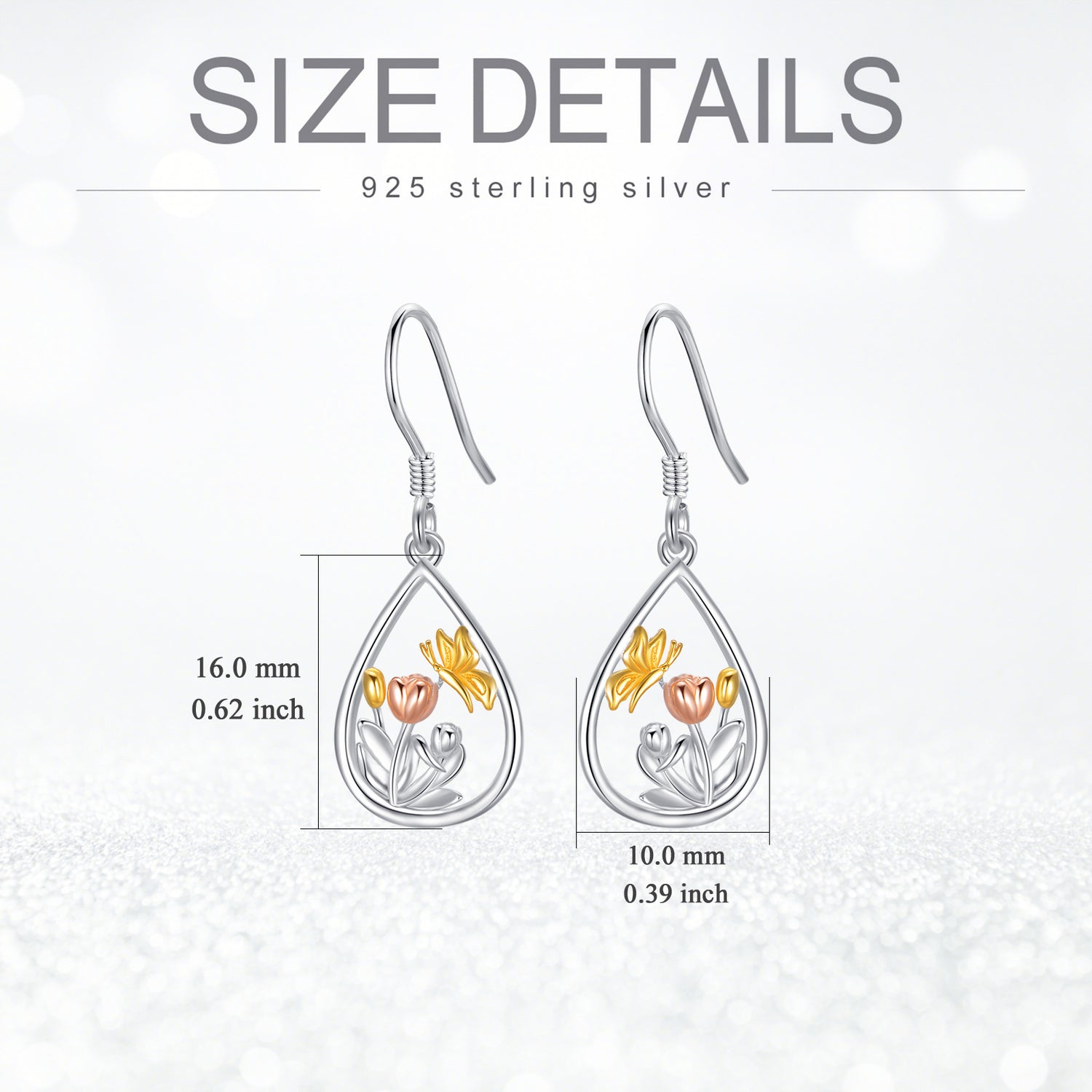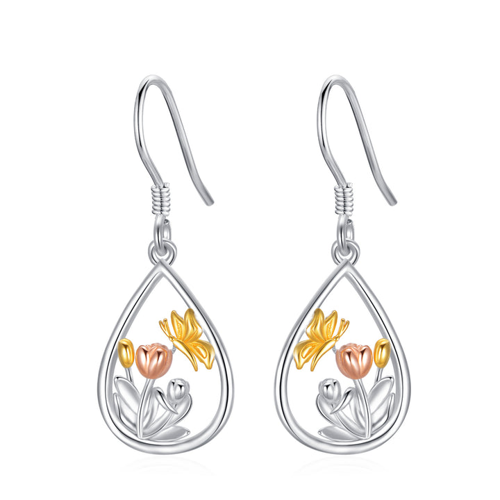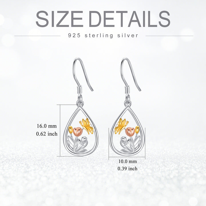 Sterling Silver Tri-tone Butterfly Drop Earrings