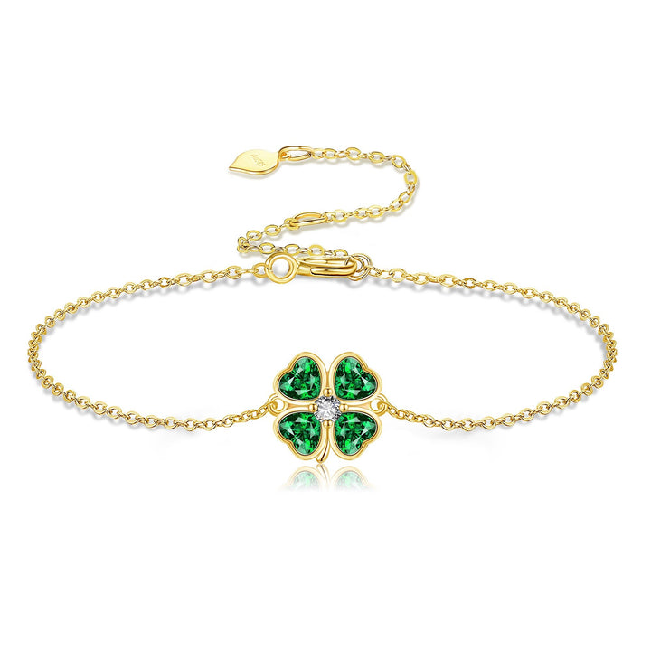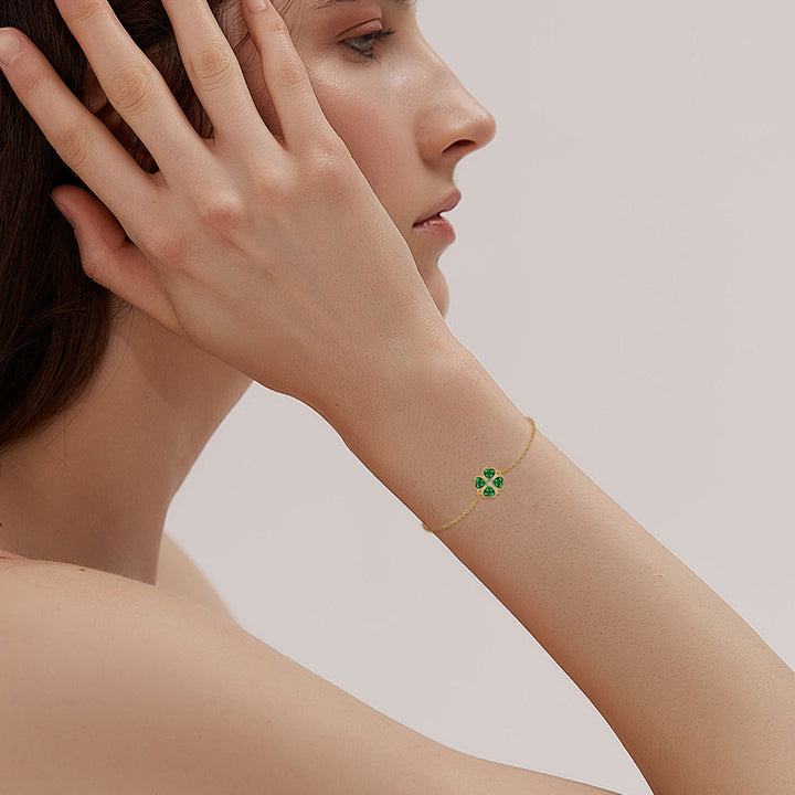 14K Gold Crystal & Cubic Zirconia Four Leaf Clover Charm Bracelet