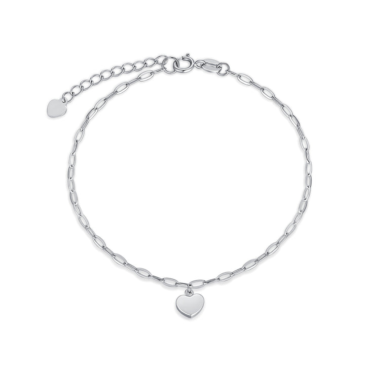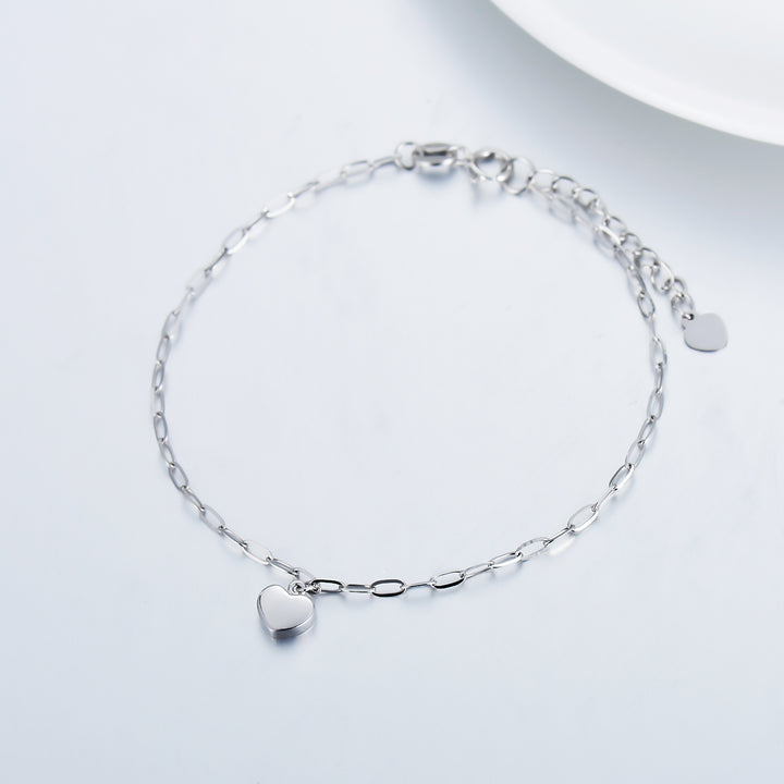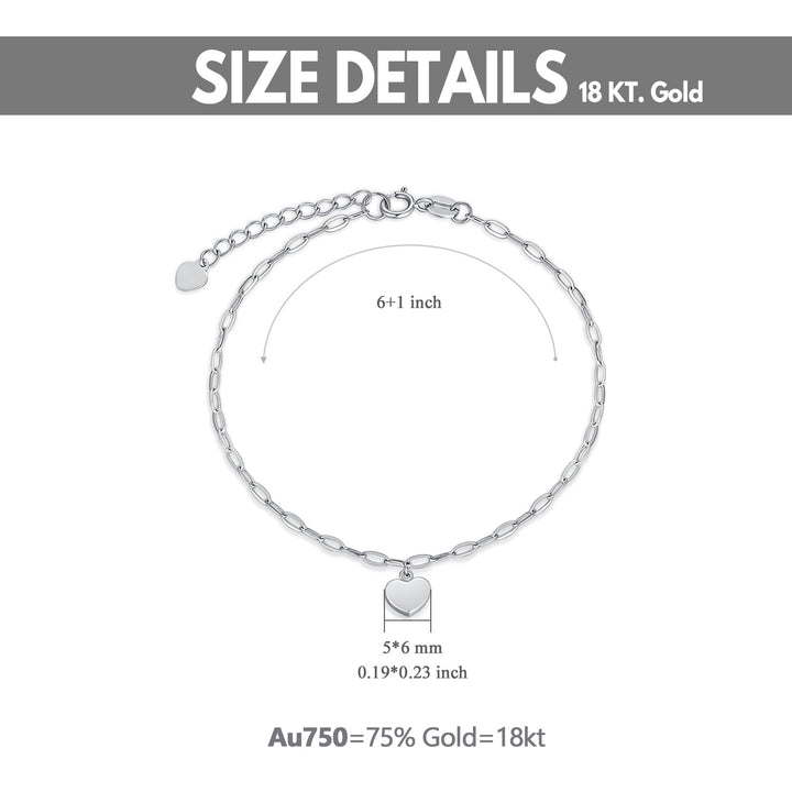 This no-stone Charm Bracelet is crafted from 18K White Gold, Featuring a Charming Heart Design.