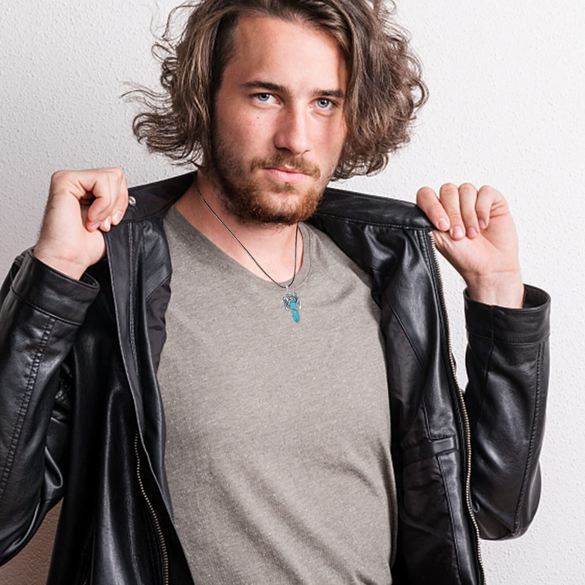 This Sterling Silver Turquoise Dragon Pendant Necklace by YFN blends vibrant color with mythical symbolism. The turquoise centerpiece provides striking contrast against the sculpted dragon motif, representing strength and protection. Finished in white gold plating, this unisex piece offers durability and captivating style for any jewelry lover.