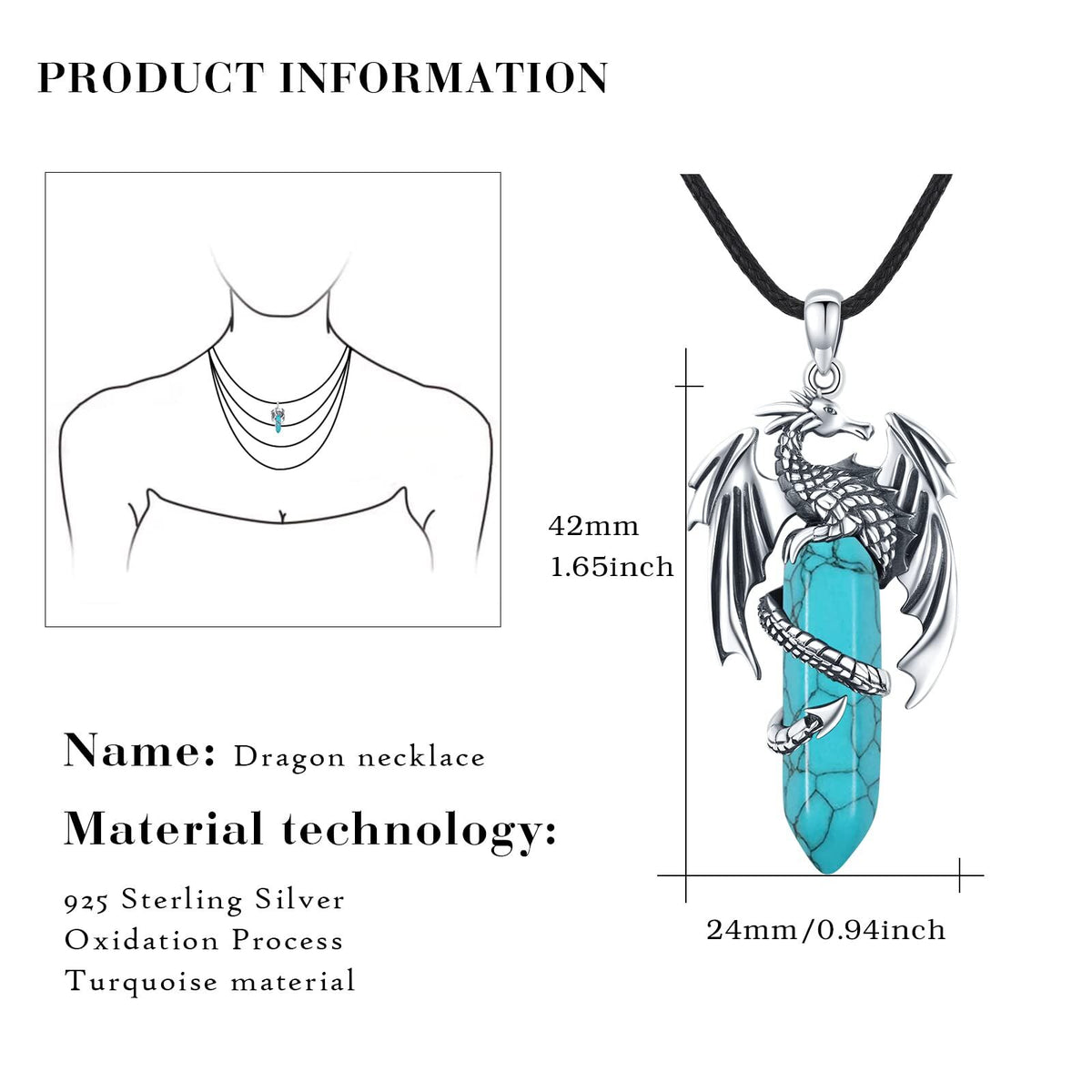 Sterling Silver Turquoise Dragon Pendant Necklace