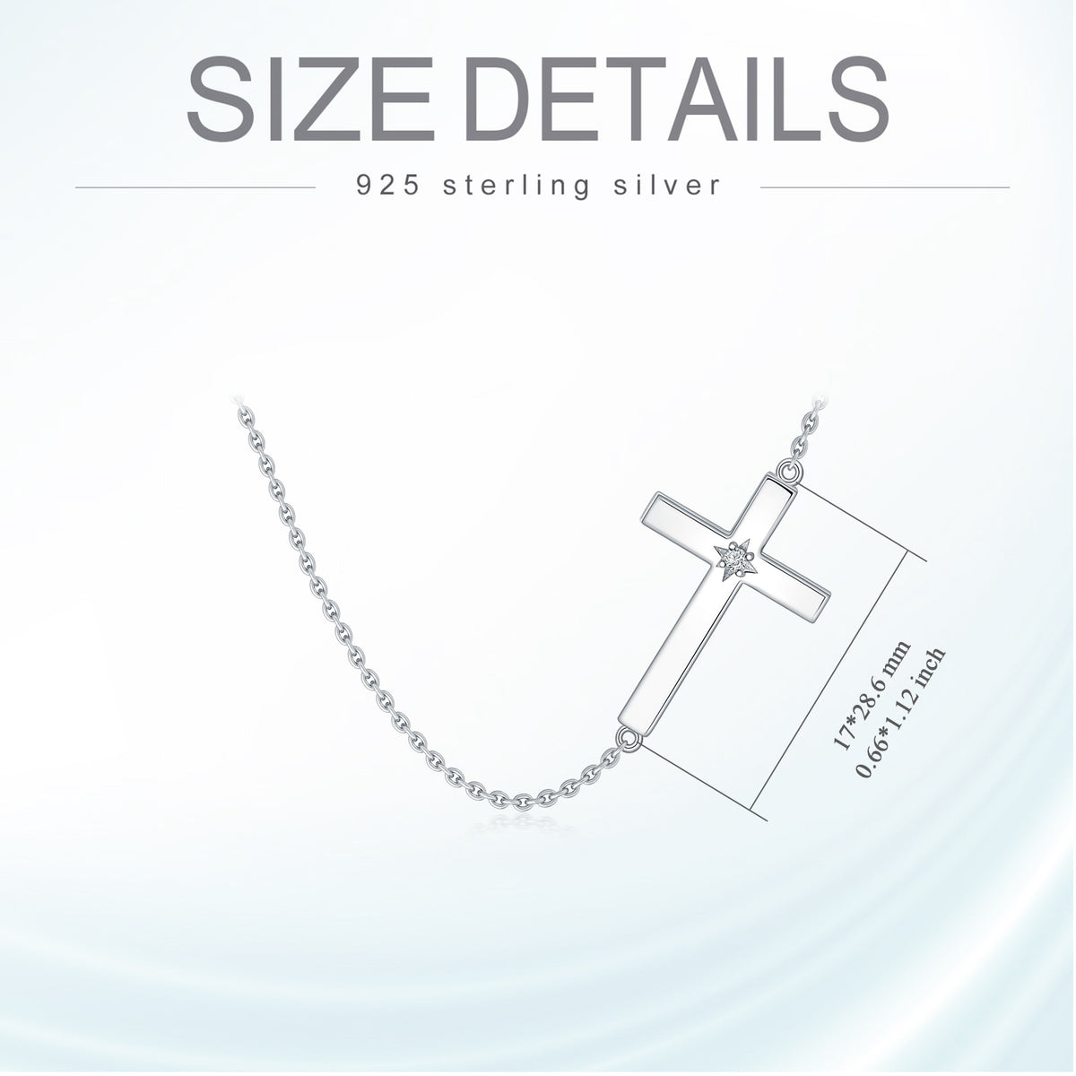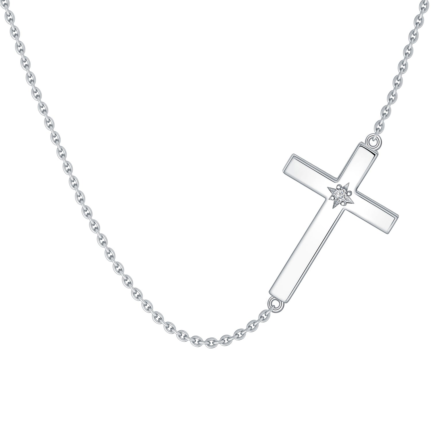 Crafted from Solid 925 Sterling Silver with White Gold Plating featuring a round Moissanite gemstone set in a Cross motif.