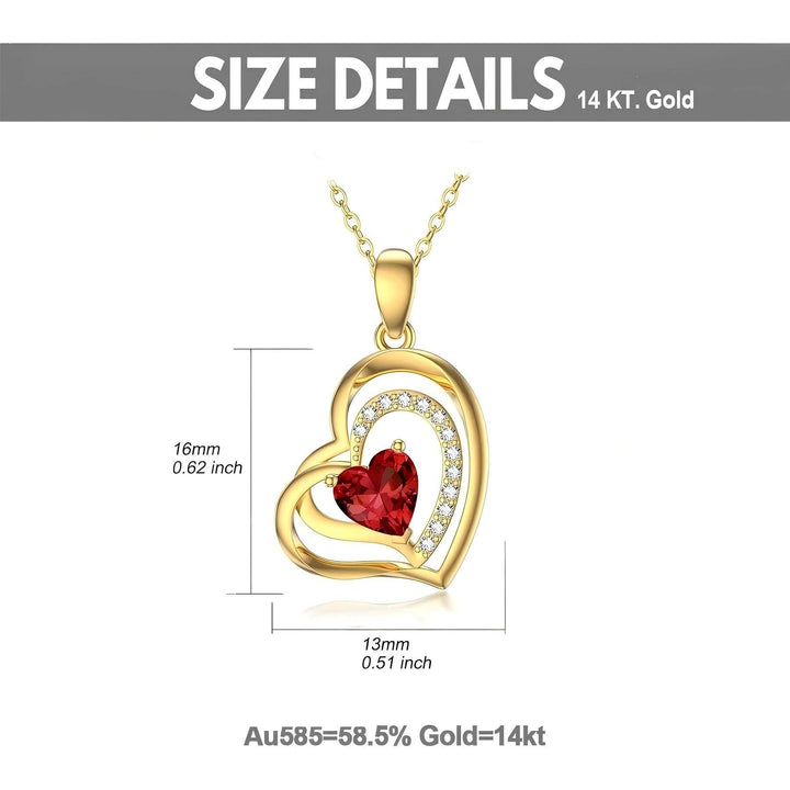 14K Gold Ruby Couple Mother Heart With Heart Pendant Necklace Gemstone Necklaces