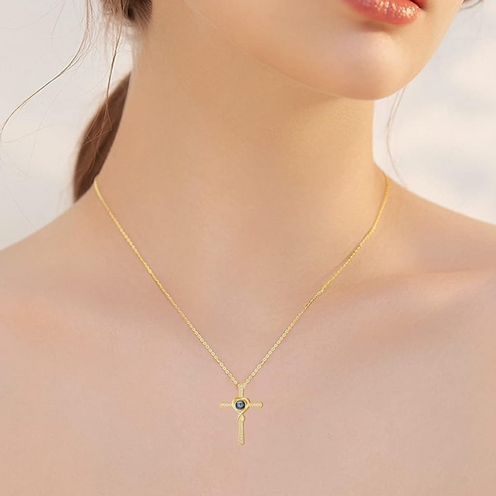 This Gold Vermeil Cubic Zirconia Personalized Projection & Cross Necklace by YFN intertwines faith, love, and personalization in a design meant for both women and men. The cross silhouette offers spiritual symbolism, while the cubic zirconia–studded frame adds refined luminosity. At its heart lies a unique projection stone capable of displaying a photo or message—transforming the necklace into a deeply meaningful keepsake. With its polished finish and unisex appeal, it becomes a modern expression of devotion, connection, and personal storytelling.