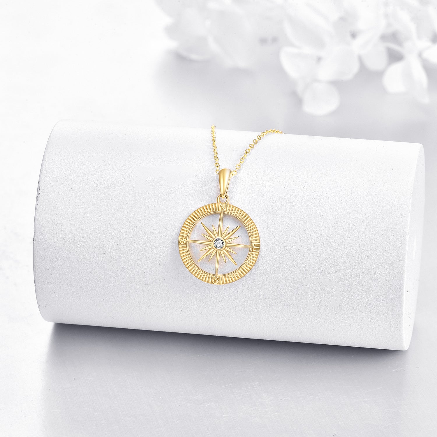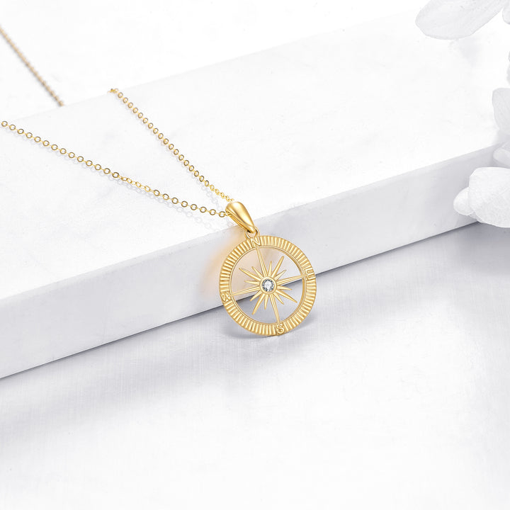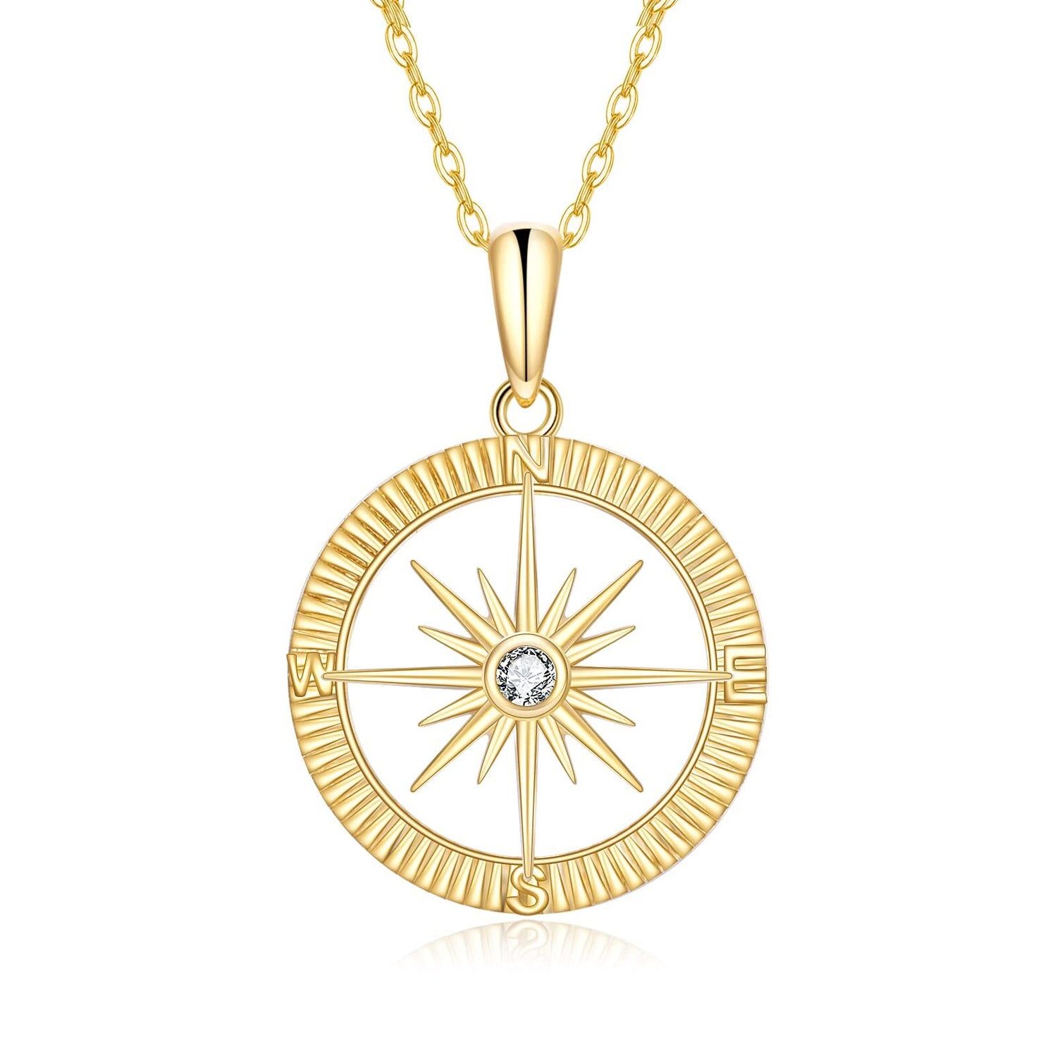 14K Gold Cubic Zirconia Diamond Cut Compass & Sun Pendant Necklace