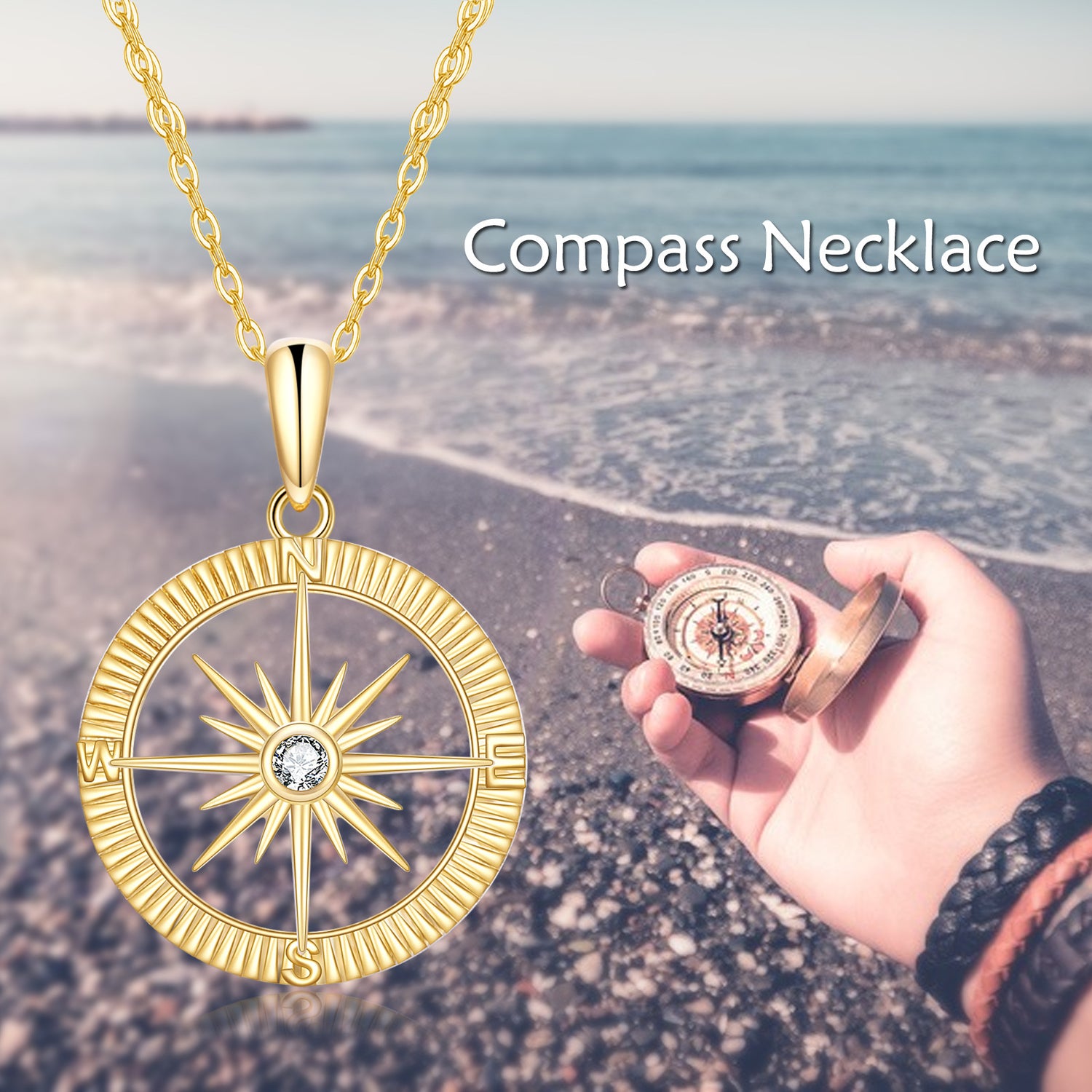 Crafted from solid 14K gold featuring cubic zirconia accents in a diamond-cut compass and sun motif.