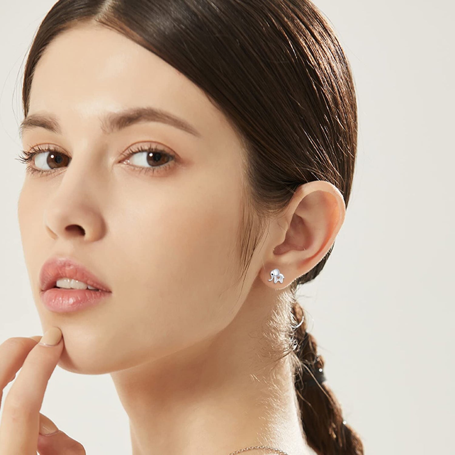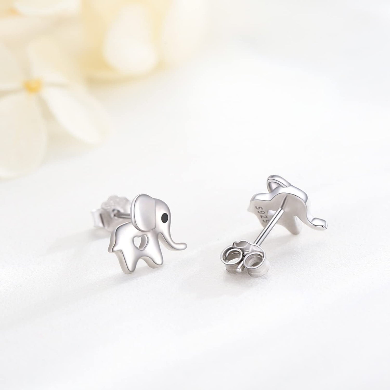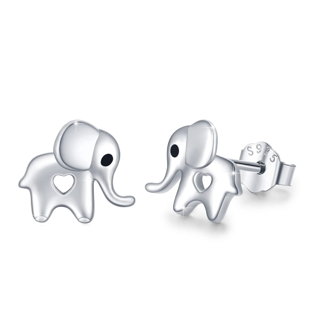 These no-stone Women's Stud Earrings are Crafted from Sterling Silver with White Gold Plating, Showcasing a Charming Elephant Motif.