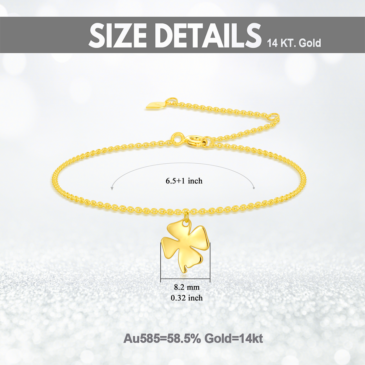 14K gold; four-leaf clover charm; bracelet design; stone-free.