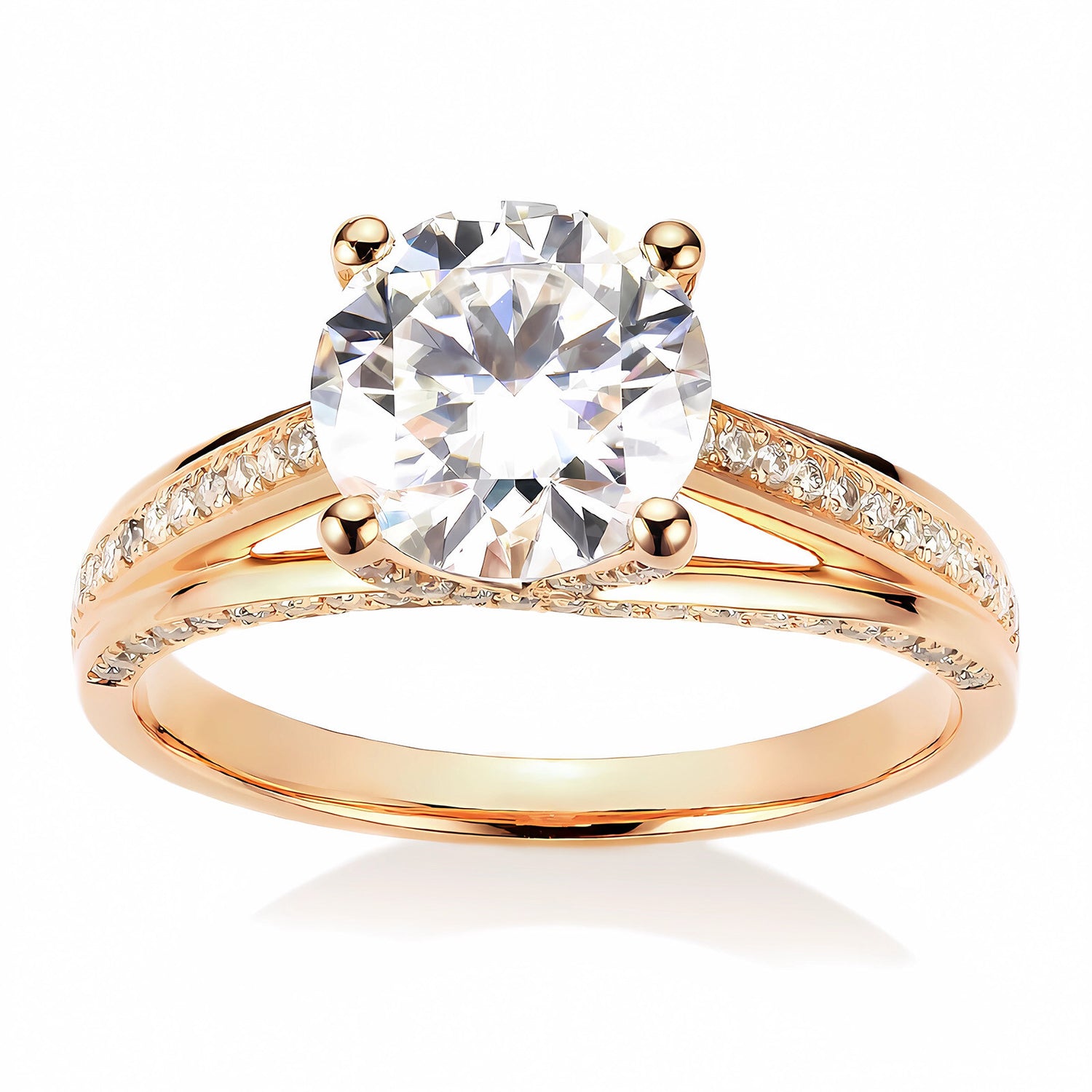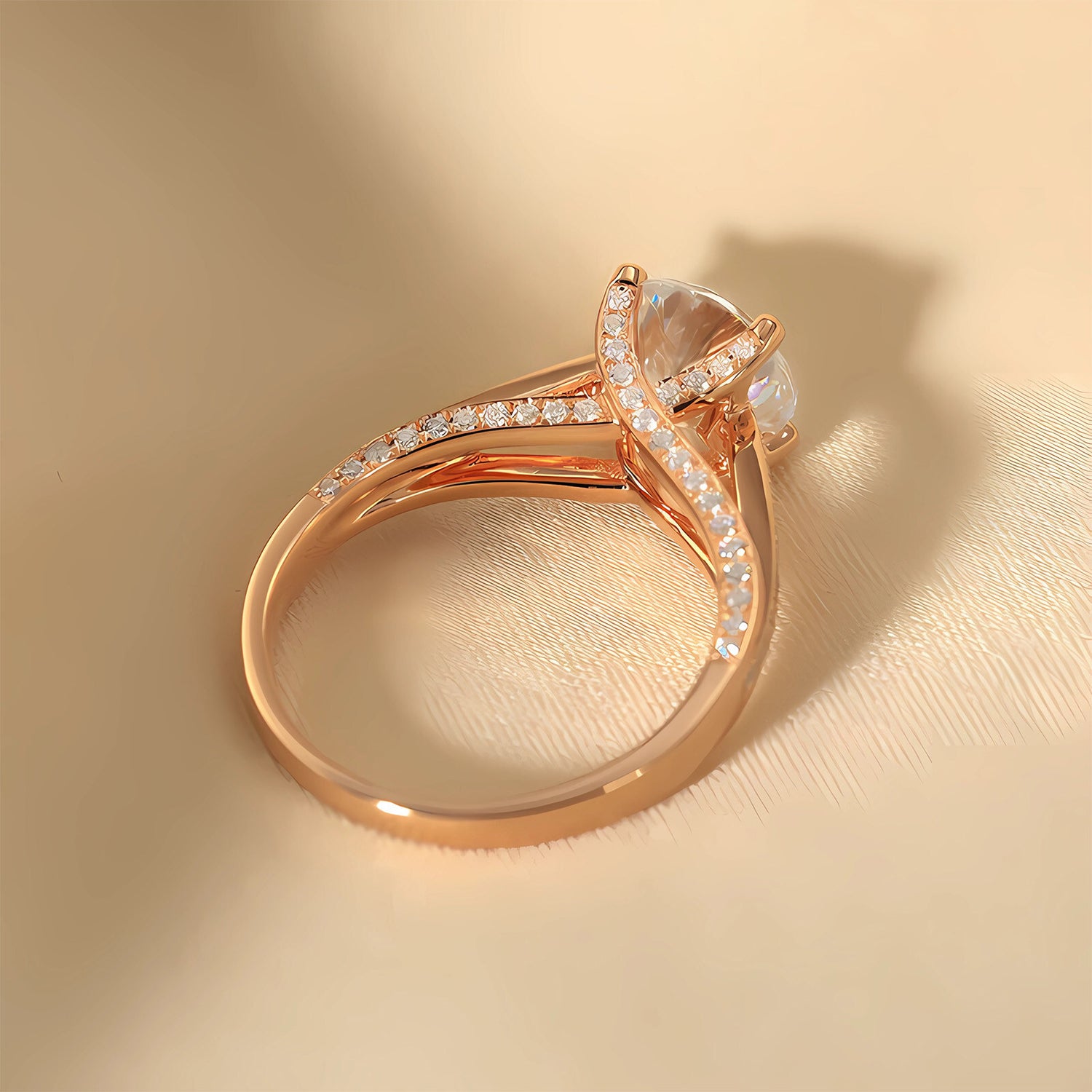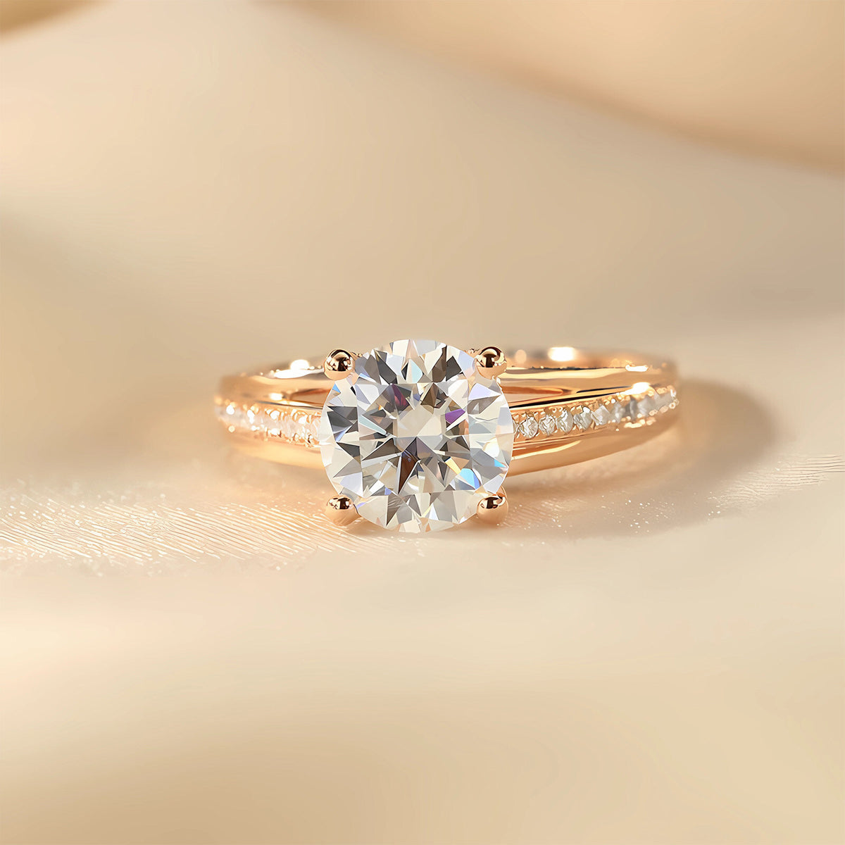 14K Gold Round Moissanite Personalized Engraving & Engagement Ring