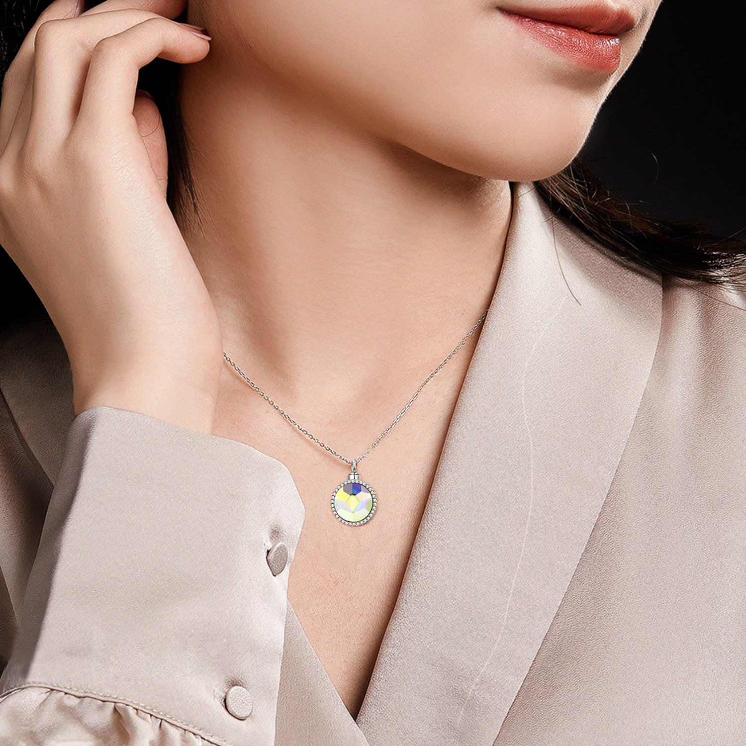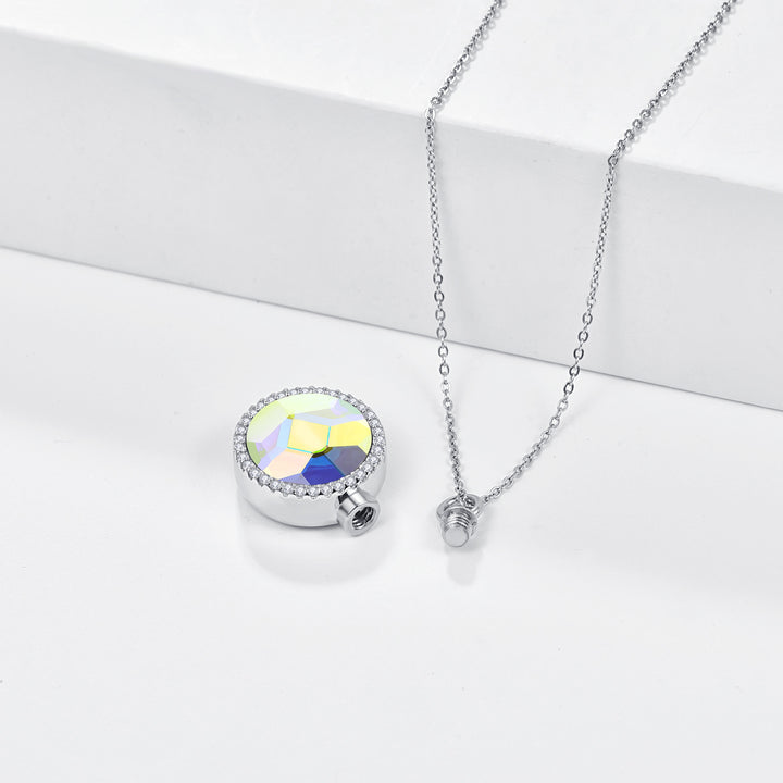 Sterling Silver Circular Shaped Crystal Round Urn Necklace for Ashes