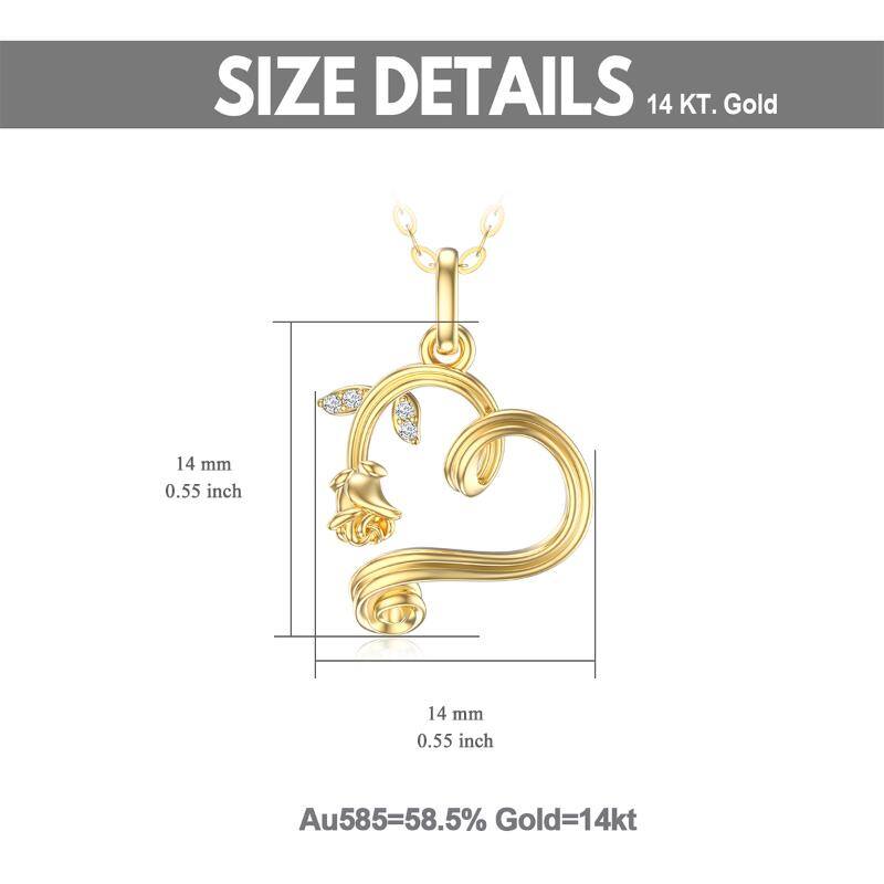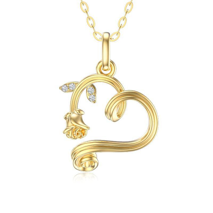 14K Gold Rose & Heart Pendant Necklace