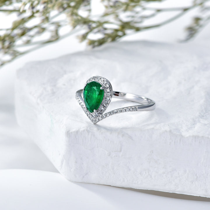 18K White Gold 2.5 to 7.5 CT.T.W. Pear Cut Emerald Custom Engagement Ring Anniversary Ring