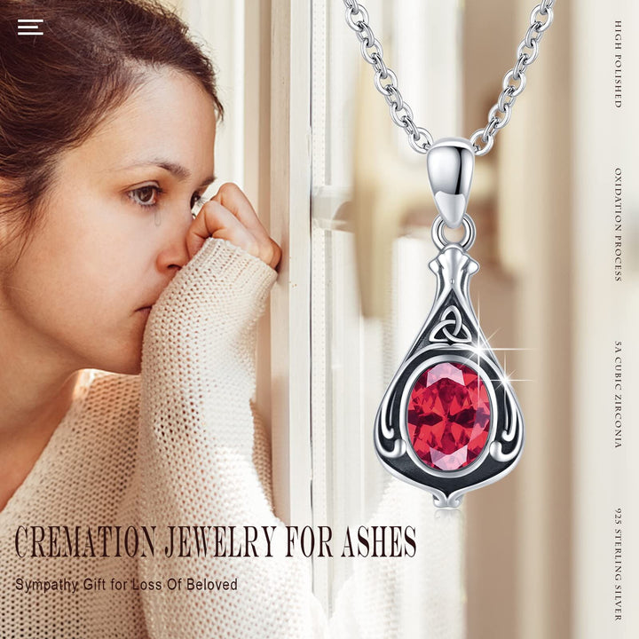 Sterling Silver Oval Shaped Garnet Celtic Knot Urn Necklace for Ashes