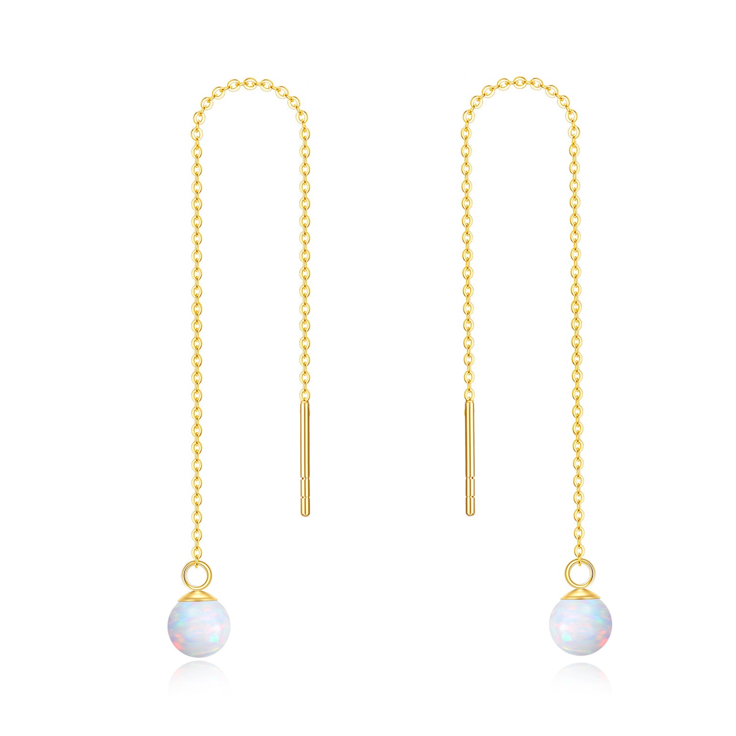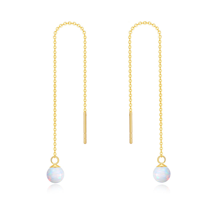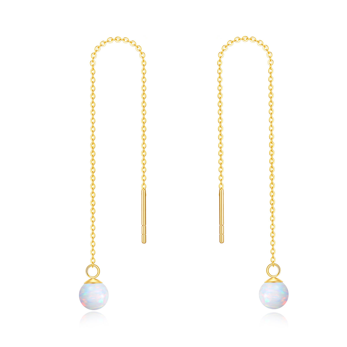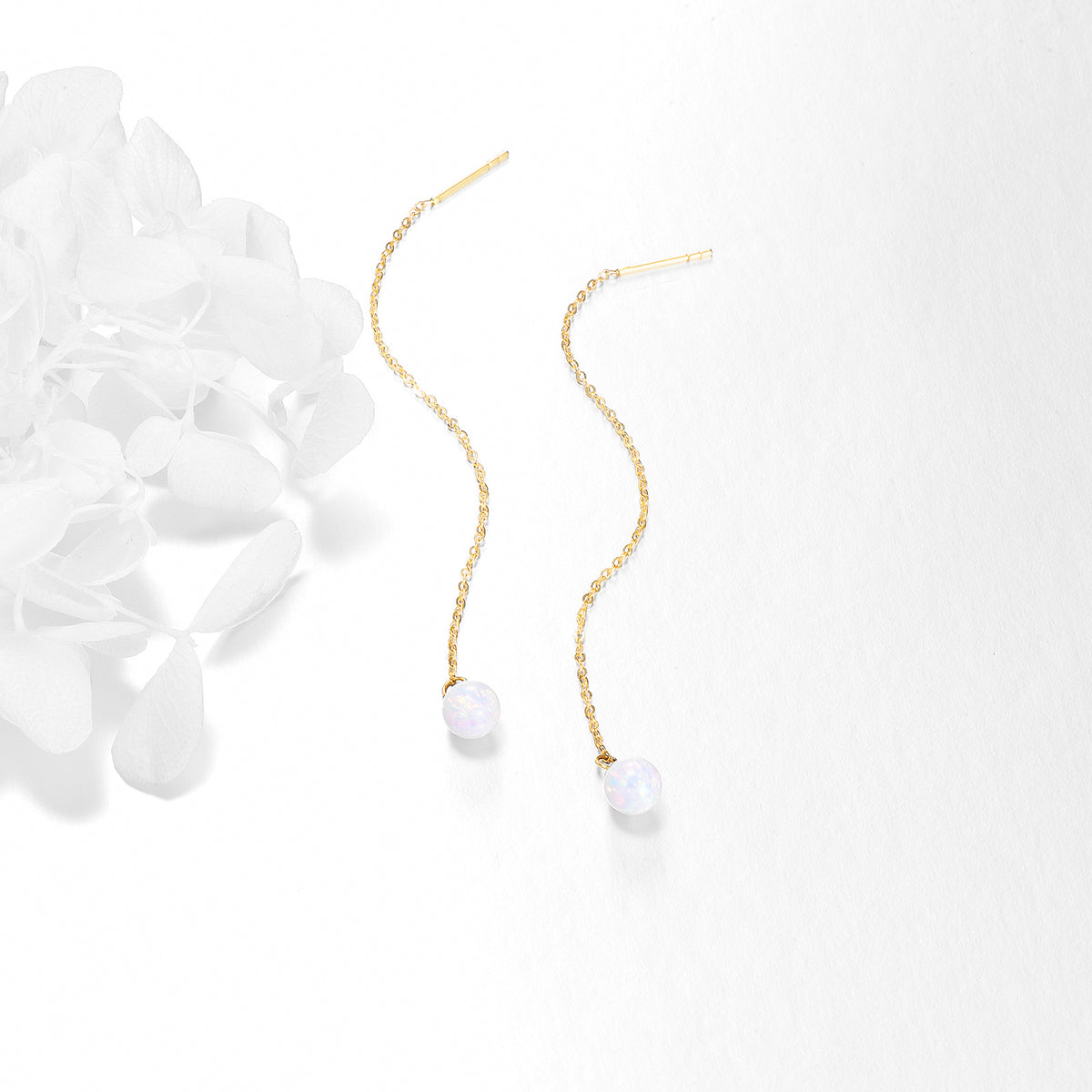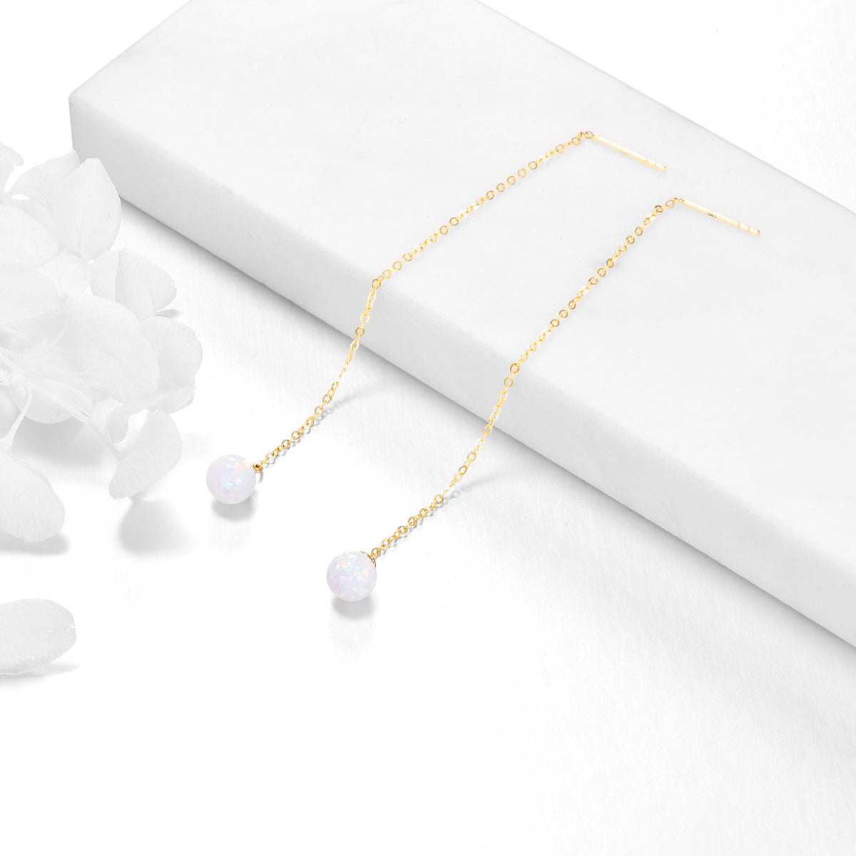 These 14K Gold Circular Shaped Opal Drop Earrings by YFN offer captivating iridescence through their beautifully set circular opals. Suspended in luminous gold, they bring refined movement and modern sophistication to any wardrobe.