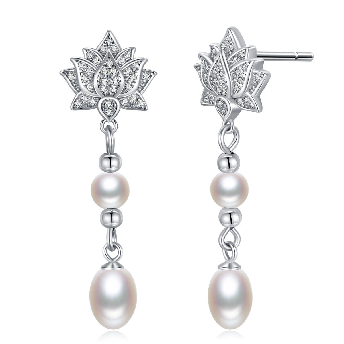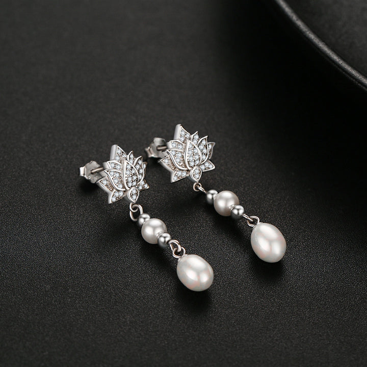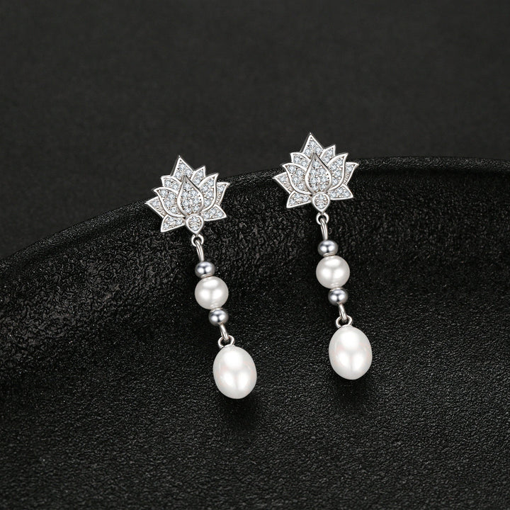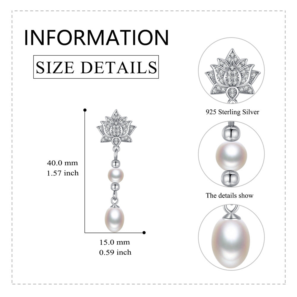Sterling Silver Oval Pearl Lotus Drop Earrings for Women