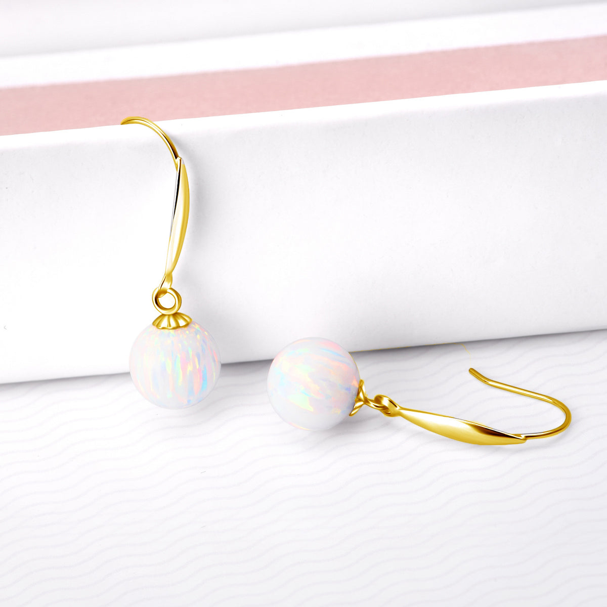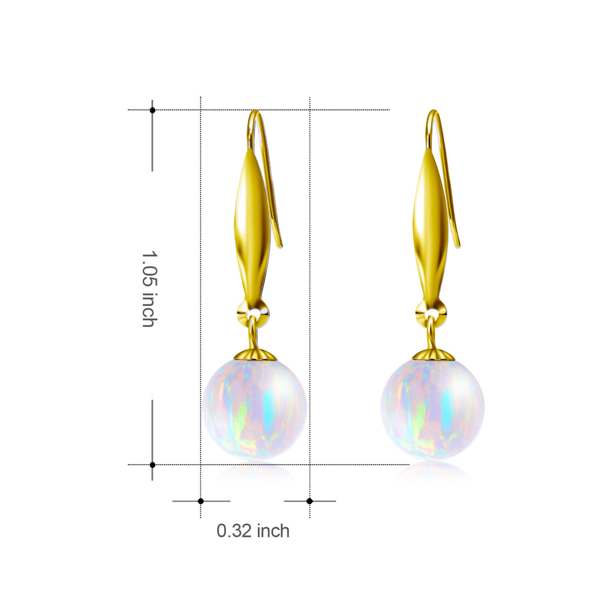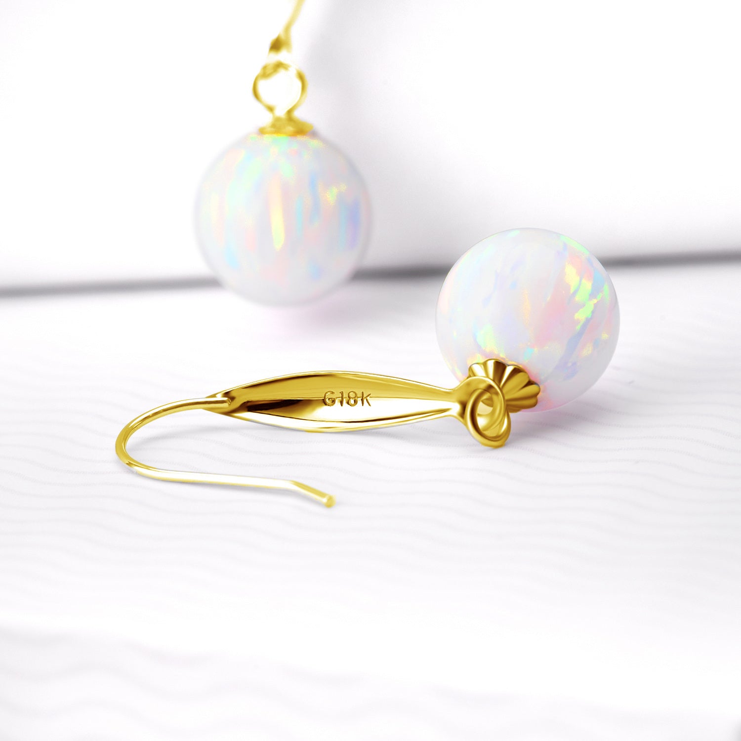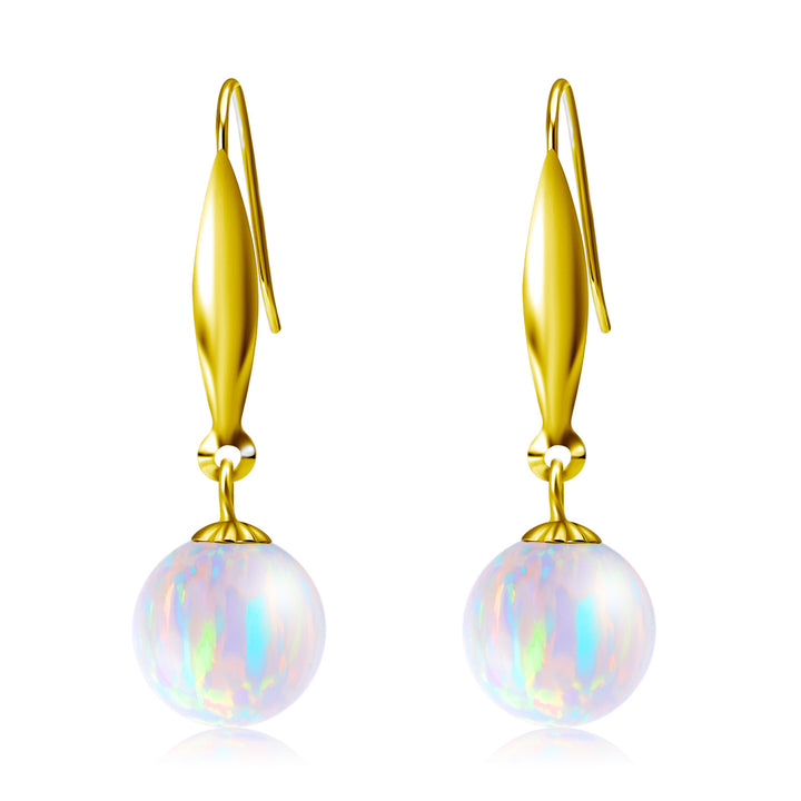 18K Gold Opal Round Drop Earrings