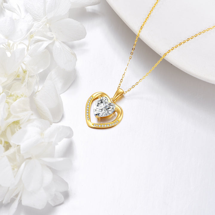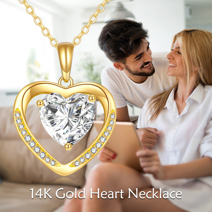 14K Gold Heart Moissanite Heart Pendant Necklace