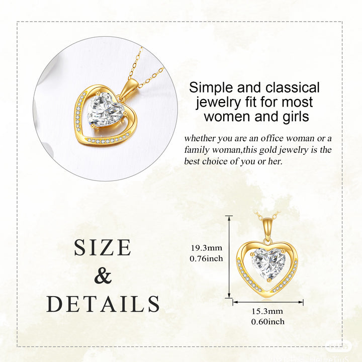 Crafted from luxurious 14K Gold, this Heart Pendant Necklace is adorned with dazzling Cubic Zirconia and Moissanite gemstones.