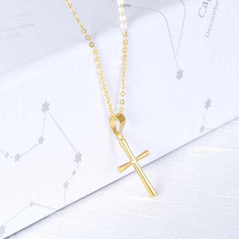 Crafted in 18K gold; minimalist cross pendant with matching chain. No stones. Standard pendant dimensions per YFN.