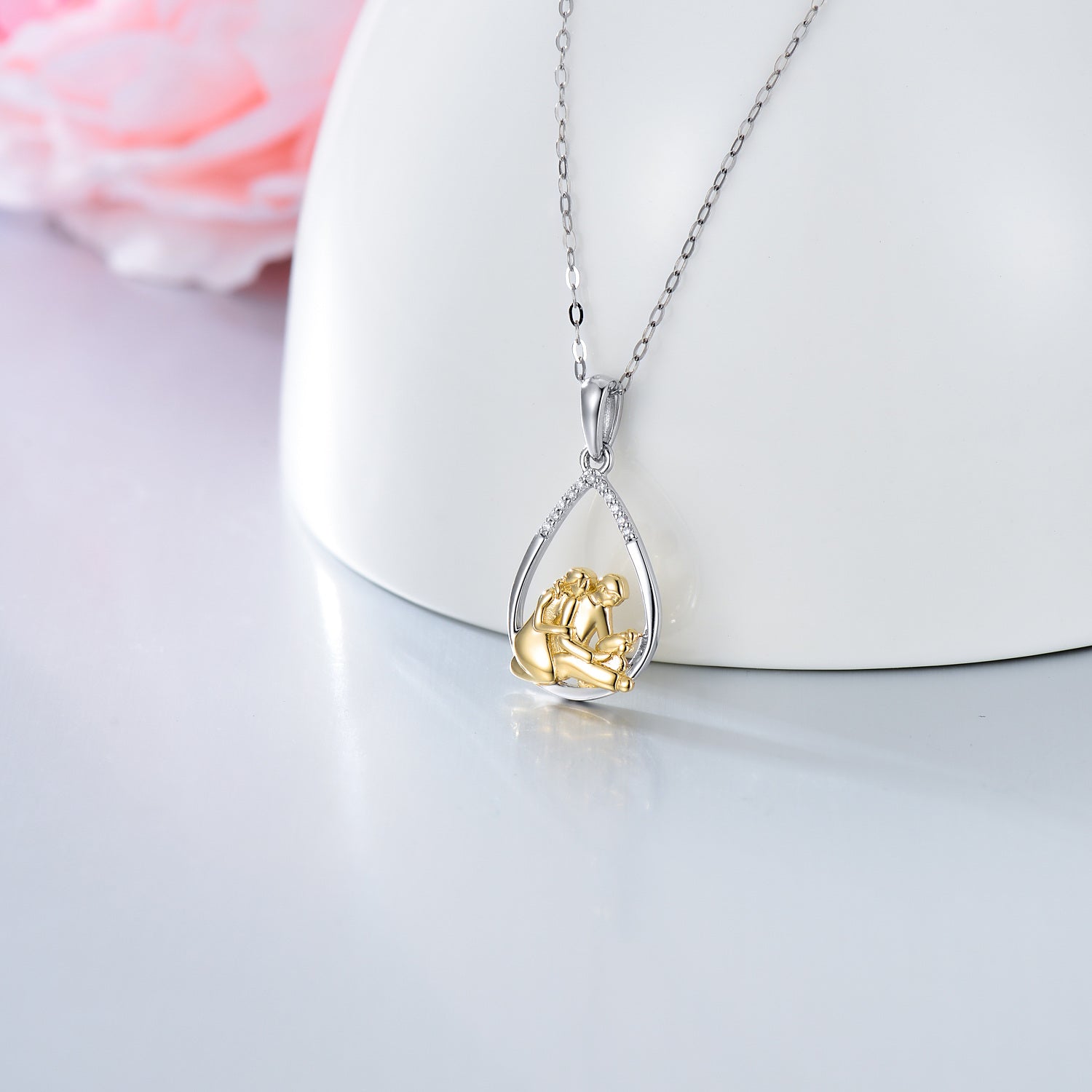 14K Gold Two-Tone Moissanite Parents & Children Pendant Necklace For Mom
