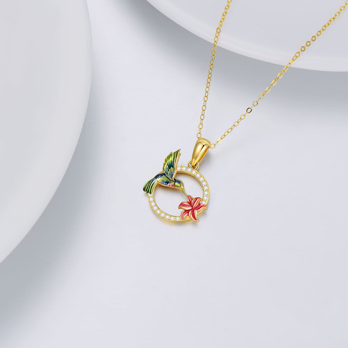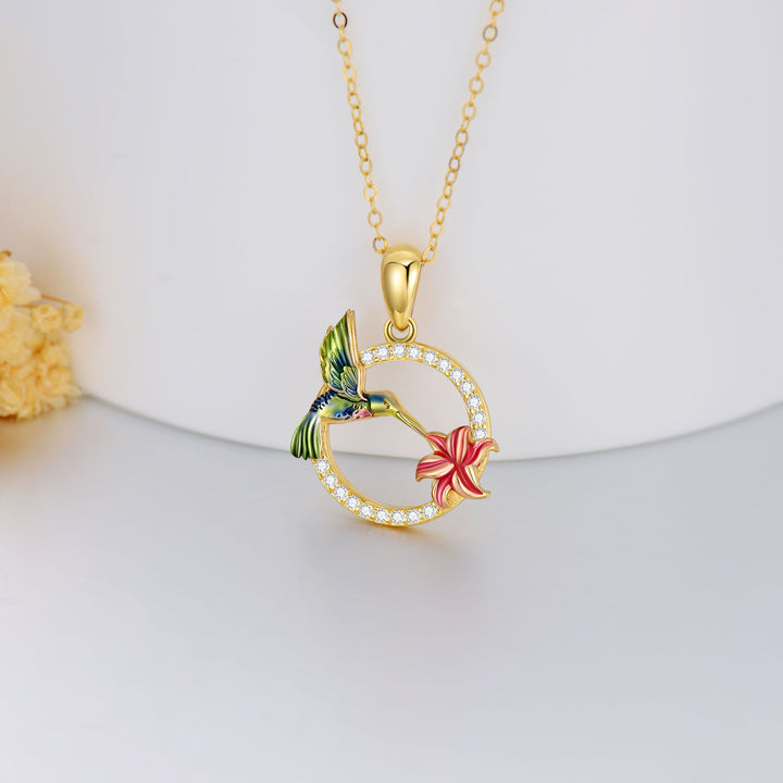 This Hummingbird Pendant Necklace is crafted from High-Quality 14K Gold, Adorned with Shimmering Zircon Stones.