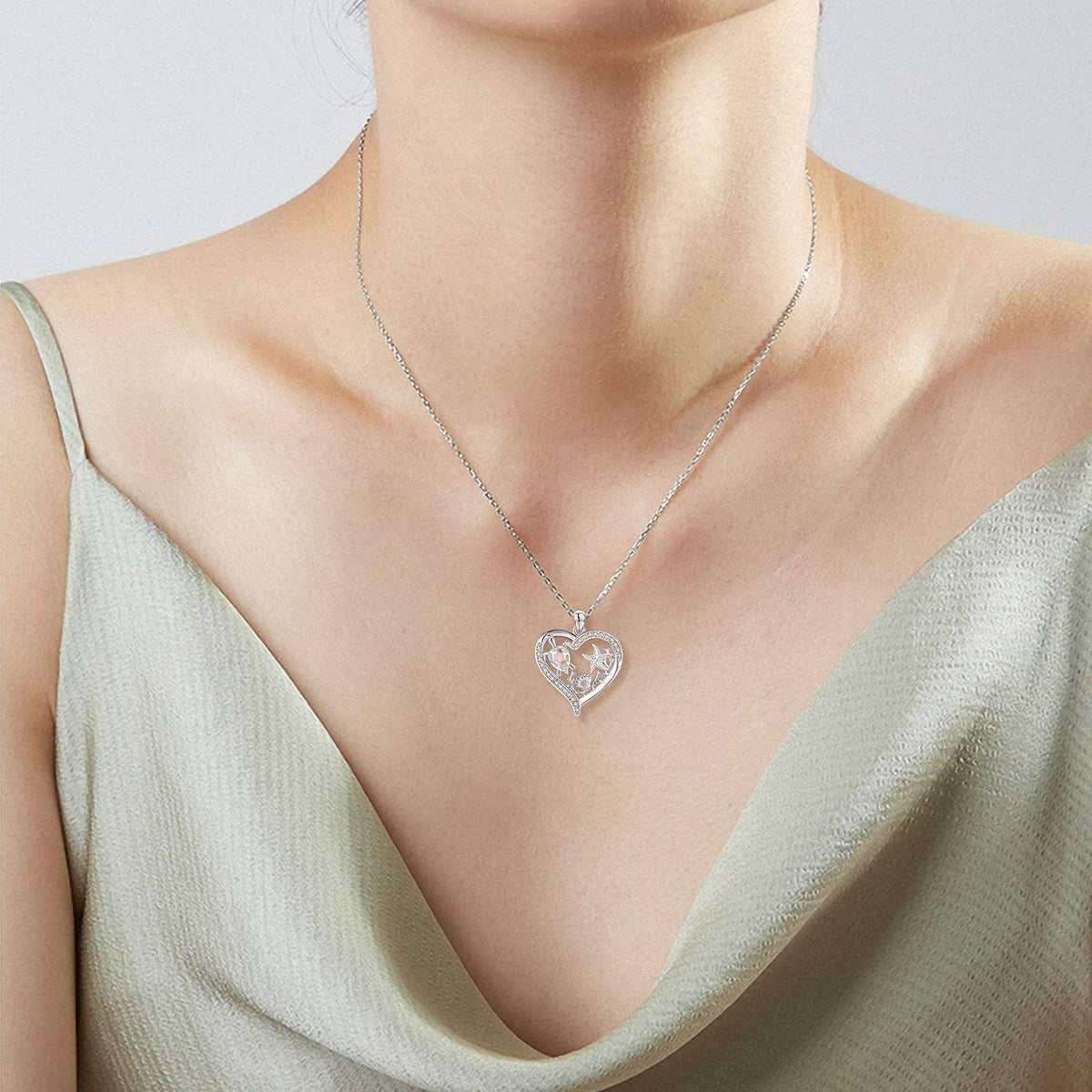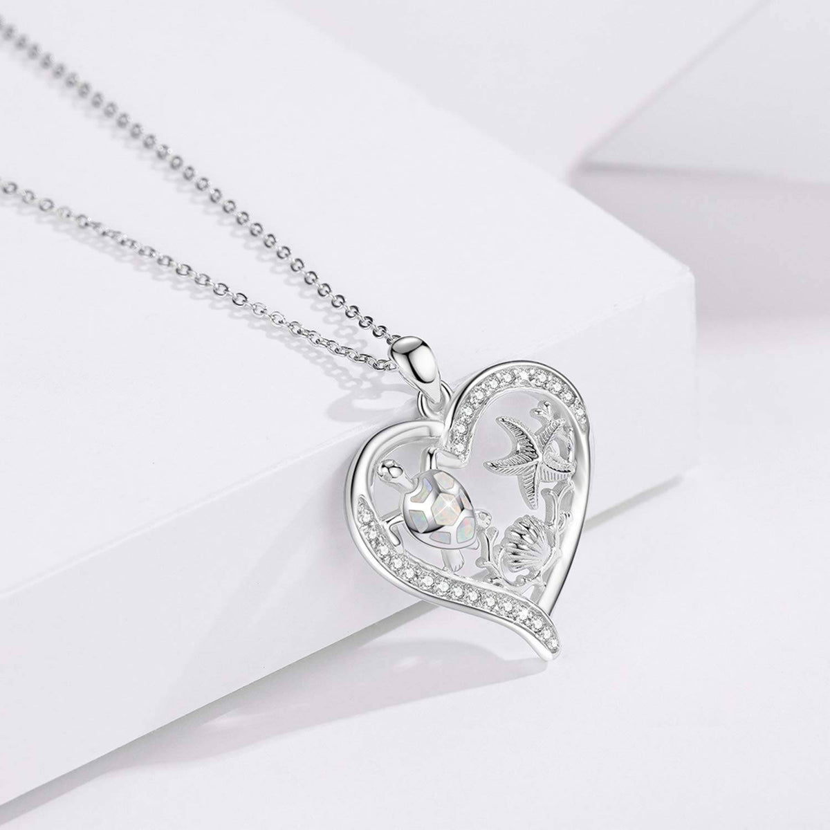 This Sterling Silver Sea Turtle & Starfish Pendant Necklace by YFN captures the wonder of ocean life through beautifully detailed marine motifs. The turtle and starfish designs exude charm, while the white gold plating adds brilliance and durability. Crafted for women who adore sea-inspired jewelry, this pendant adds a refreshing and serene aesthetic to any outfit. Its intricate detailing and timeless finish make it a meaningful accessory that evokes memories of the coast and the beauty of nature.