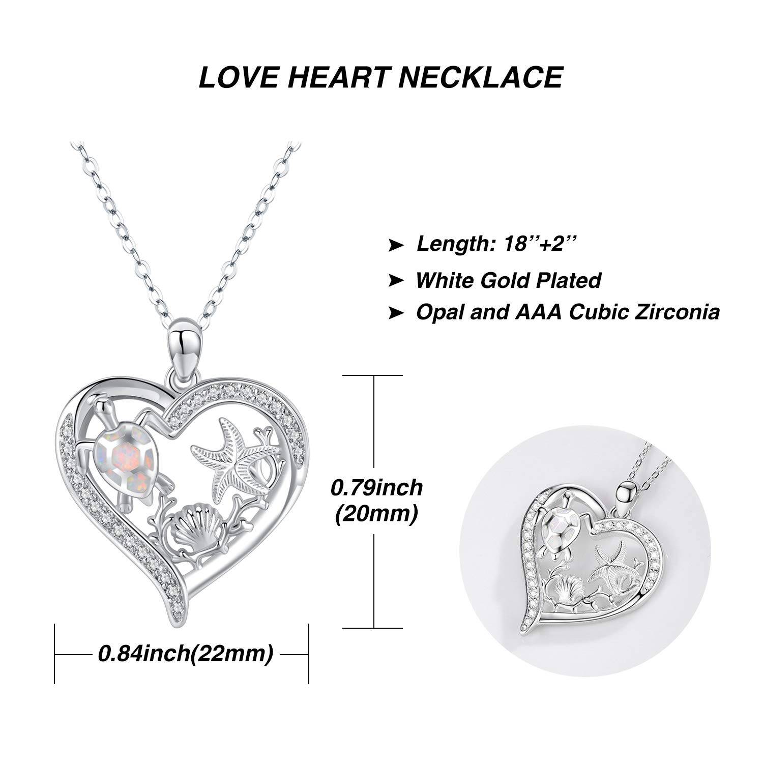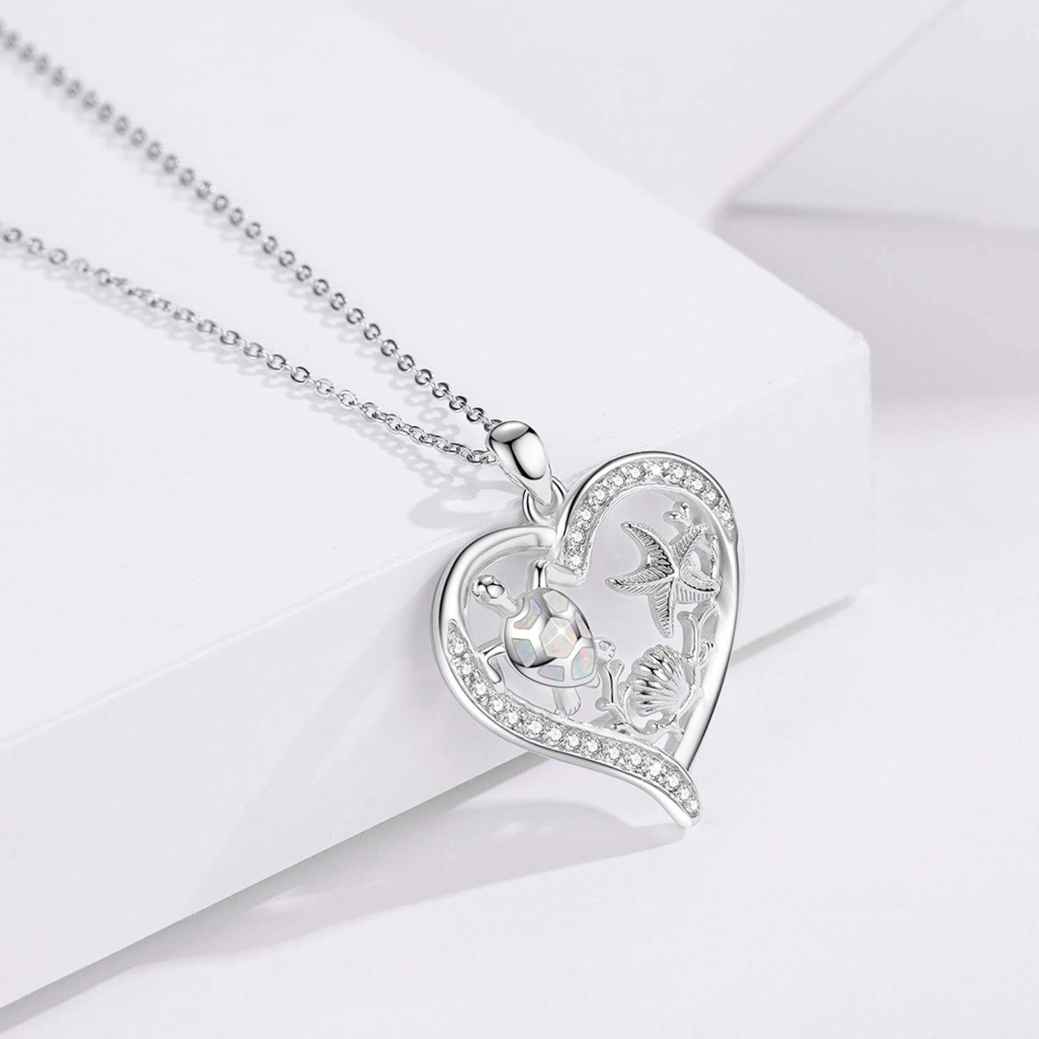 Sterling silver with white gold plating; sea turtle and starfish motifs; pendant necklace.